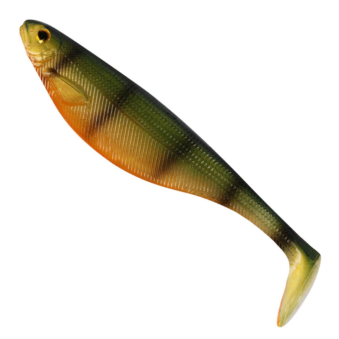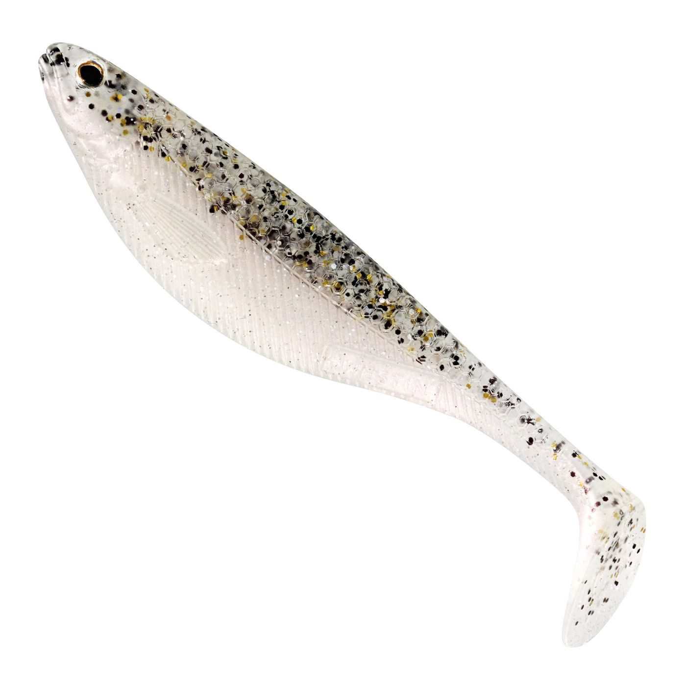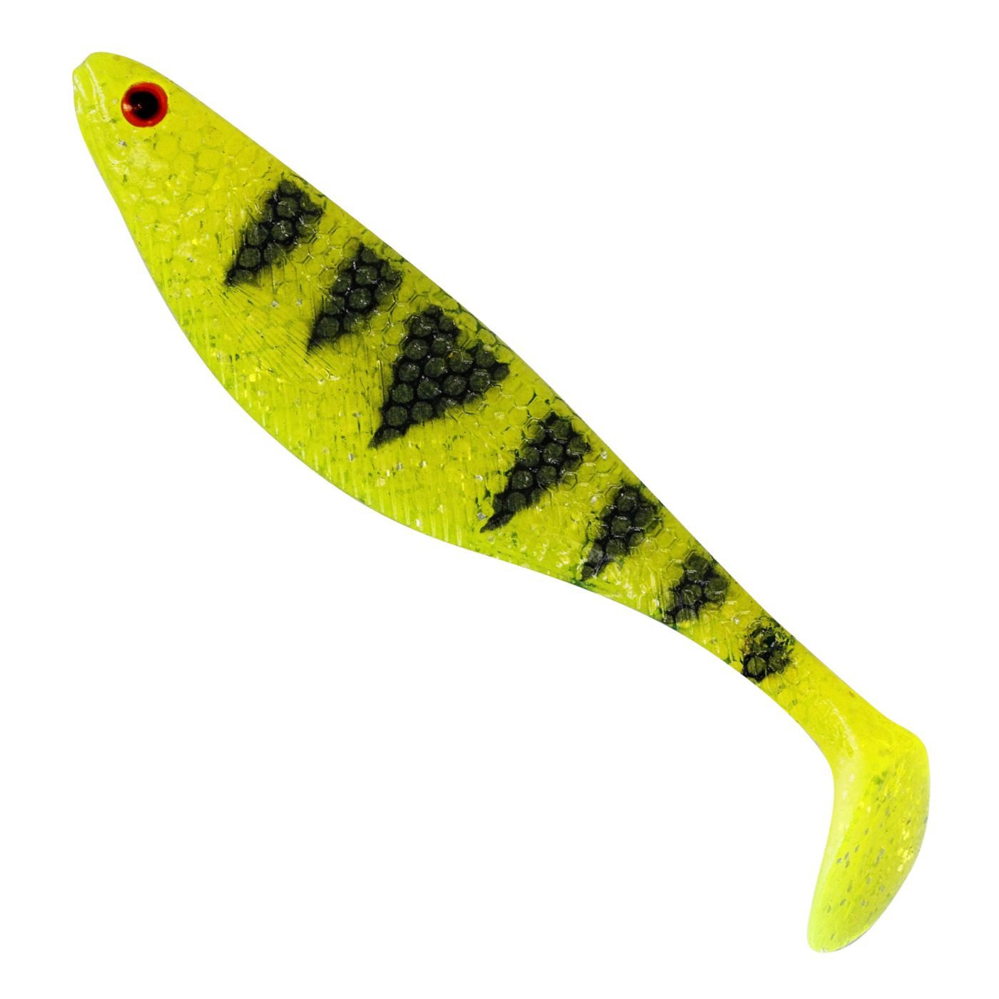 Westin ShadTeez Gummifische - Der hohe Körper, die schlanke Schwanzwurzel und der große Schaufelschwanzteller erzeugen schon bei niedriger Geschwindigkeit ein Bewegungsmuster, bei dem der Köder stark um die eigene Achse rollt und dabei die Flanken immer wieder aufblitzen lässt - gut geeignet für große Raubfische. Der Köder kann gejiggt, einfach nur gleichmäßig durchgekurbelt (eingeleiert) oder vertikal angeboten werden. Er imitiert einen leicht verwundeten panischen Fisch,den sich der Hecht, Zander, Barsch oder Forellen nicht entgehen lassen wird!