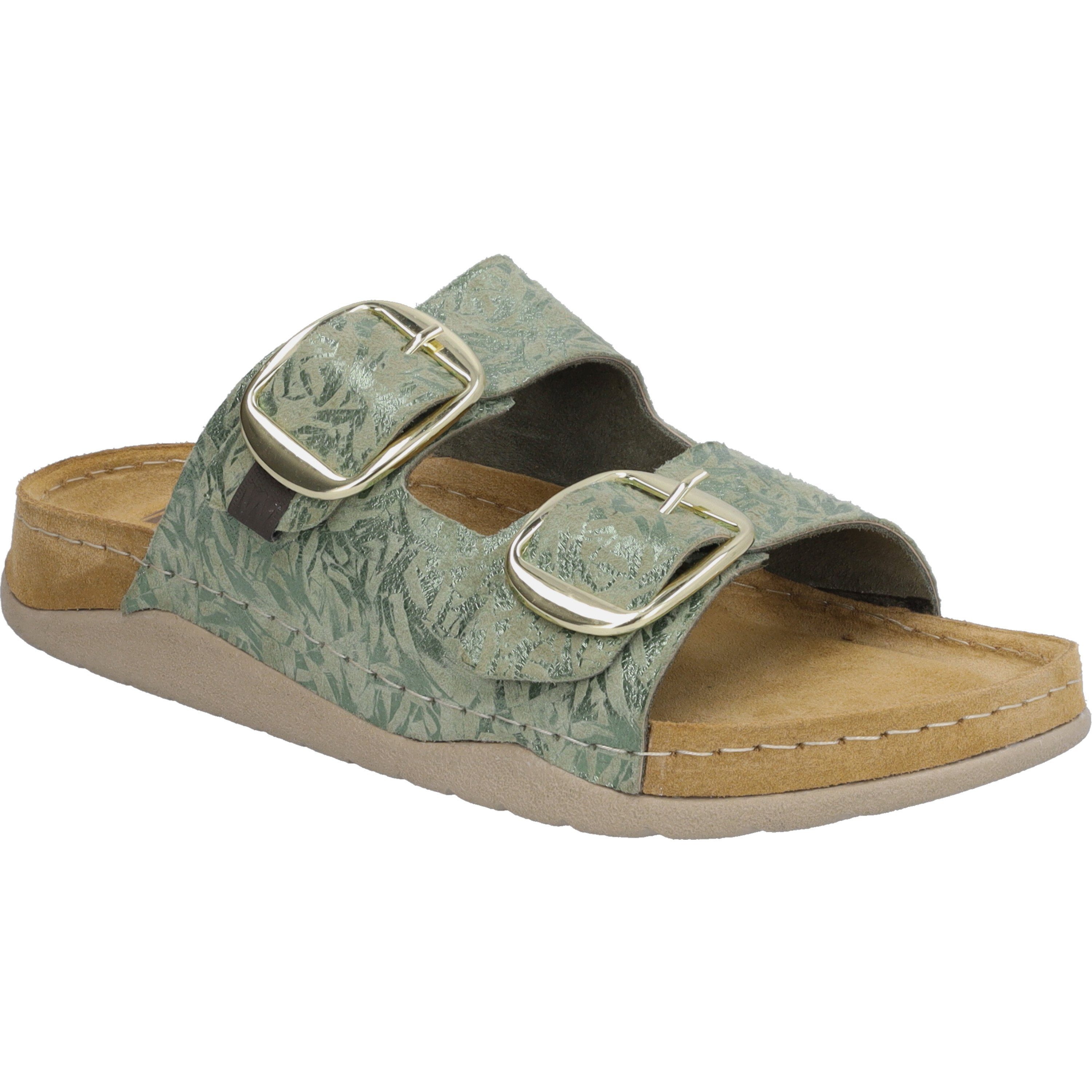 Mit den Girona 09 Sandalen von Westland, in einem ansprechenden grün-kombi, erlebst du den Sommer von seiner besten Seite. Diese Damensandale, gefertigt aus hochwertigem Ziegenleder, bietet nicht nur eine hervorragende Passform, sondern auch ein angenehmes Tragegefühl, dank der weichen Rindsvelour-Innensohle. Die PU-Sohle verspricht leichte, dämpfende Eigenschaften, die jeden Schritt abfedern. Besonders hervorzuheben ist die AGO-Применитьungsart, die für eine langlebige Verbindung von Obermaterial und Sohle sorgt, ohne dabei auf Leichtigkeit und Formbeständigkeit zu verzichten. Das florale Muster des Leders unterstreicht den lässigen Charakter der Sandale, perfekt für jegliche Freizeitaktivitäten im Freien. Ein Schnallenverschluss rundet das Design ab und ermöglicht eine individuelle Anpassung. Entdecke die Welt in den Girona 09 Sandalen, die fernab von Fast Fashion, ein Zeichen für bewusste Mode setzen.