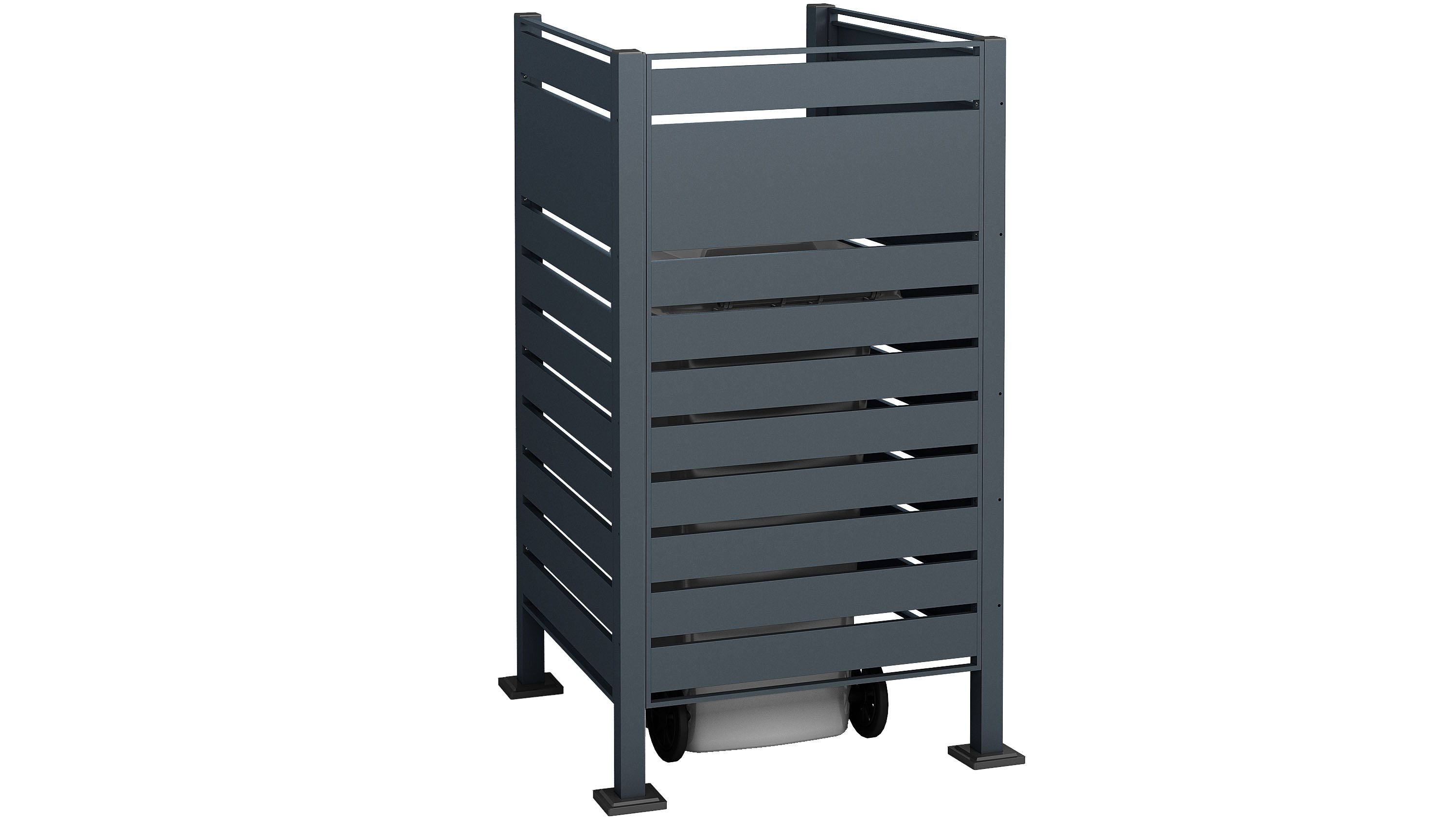 Westmann Metall Mülltonnenverkleidung Planum, 1x240 l, Anthrazit, 80x80x150 cm Modern und funktional — die minimalistische Mülltonnenverkleidung Planum von Westmann lässt deine Mülltonne im Handumdrehen hinter der zeitlosen Konstruktion aus pulverbeschichtetem Stahl verschwinden. Kaum ein Gegenstand des täglichen Gebrauchs ist so essenziell, gleichzeitig aber optisch so unbeliebt wie die Mülltonne. Mit der Mülltonnenverkleidung Planum von Westmann knüpfen wir genau an dieses Problem an! Die moderne Mülltonnenverkleidung versteckt deine Mülltonne gekonnt hinter einem nach hinten und oben offenen Sichtschutz aus dunkelgrauem, rostfreien Stahl. Die Mülltonnenbox Planum ist 2-in-1, denn neben der sichtbaren Aufwertung der Mülltonne fungiert die Verkleidung je nach Размер und Standort gleichzeitig auch als dekorativer Sichtschutz. Deine Mülltonne bleibt dank der offenen Konstruktion begehbar, sodass sich der Müll problemlos entsorgen lässt. Außerdem kannst du die Vorrichtung alternativ als Lager- oder Stellplatz für Fahrrad, Besen und Co. nutzen. Hinweis: Um der Mülltonnenverkleidung mehr Standfestigkeit zu verleihen, sollten die Säulen der mobilen Konstruktion an den dafür vorgesehen Bohrlöchern auf festem Untergrund befestigt werden. Besonderheiten: Mülltonnenverkleidung und Sichtschutz Modernes und zeitloses Design Platz für 1 Mülltonne, 240 L Korpus aus pulverbeschichtetem Stahlblech Wartungsarm und korrosionsfrei Stabil und langlebig Modular erweiterbar Vorgebohrte Montagteile Einfache Montage