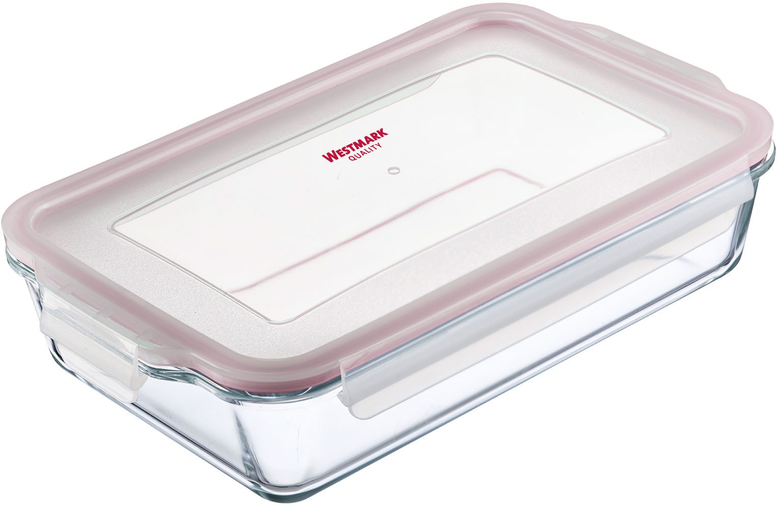 Lieferumfang: 1x Westmark Glas-Auflaufform, Maße: 31,5 x 19,7 x 7,3 cm, Material: Glas/Silikon/Kunststoff (PP)
