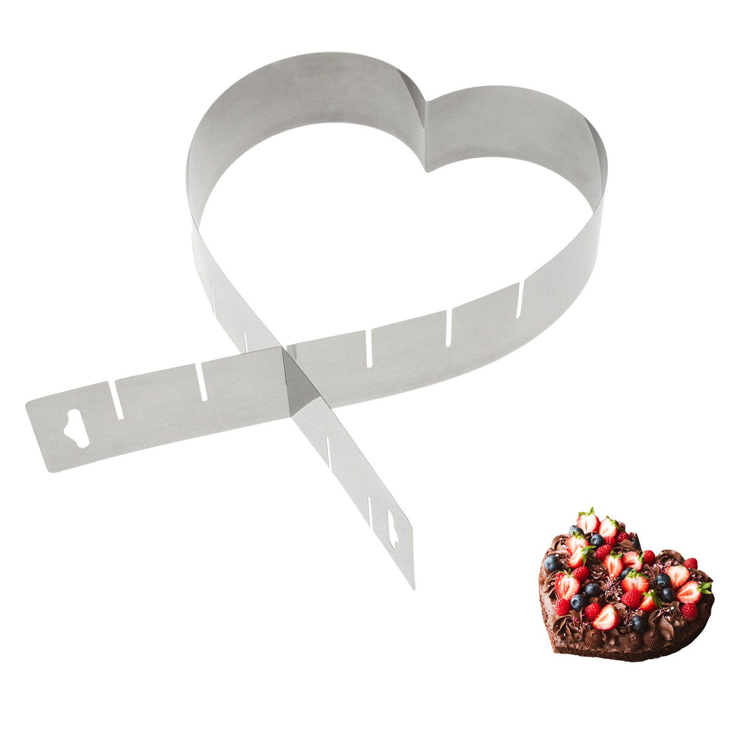 • Herzbackform ohne Boden zum Backen, Formen und Schichten von herzförmigen Kuchen, variabel verstellbar von 14,5- 27 cm Breite, auch für herzhafte Pizzen etc. • Gleichmäßige Form ohne Auseinanderlaufen der Teigmasse beim Backen, einfaches Auslösen des Backgutes und formstabiles Schichten und Dekorieren mehrerer Böden durch leicht zu öffnenden/schließenden Formrand • Gute Qualität: Hochwertiger, rostfreier Edelstahl für optimale und regelmäßige Backeigenschaften, hitzebeständig bis 240 °C • Einfache Reinigung von Hand, spülmaschinengeeignet • Pflegehinweis: spülmaschinengeeignet
