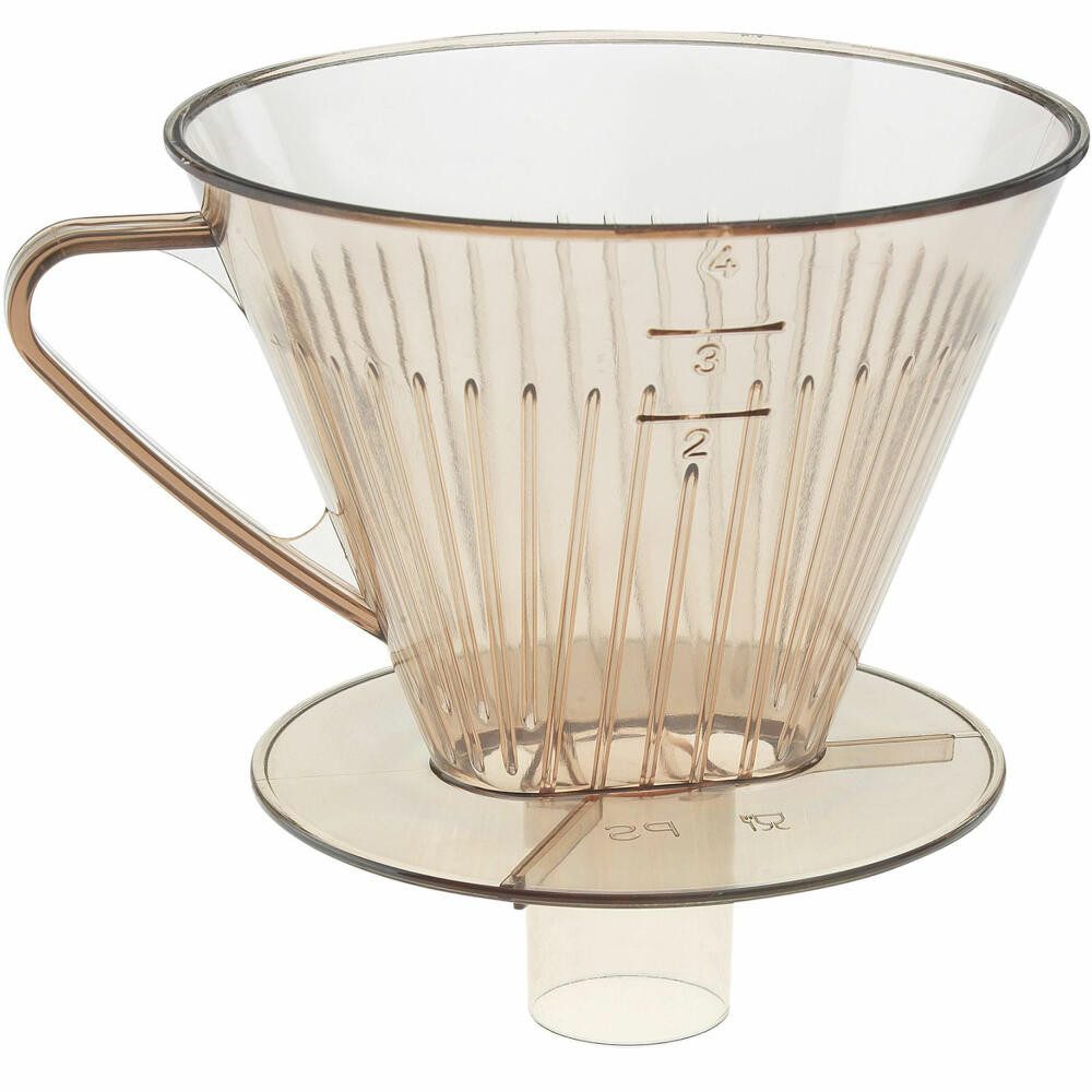 • Kaffeefilterhalter aus Kunststoff, mit langem Einfüllstutzen zum Handaufbrühen von Kaffeepulver für bis zu 4 Tassen frischen Kaffee, auch für losen Tee geeignet • Für Camper und Gelegenheits-Kaffeetrinker: Schonendes Aufbrühen von Hand ohne Strom für besonders aromatischen Kaffee, optimaler Halt - besonders auf Isolierkannen und -flaschen - durch den langen Einfüllstutzen • Gerillte Filter-Innenseite für guten Halt der Papierfilter und für optimalen Fluss in die Kanne, einfaches Einsetzen von Papierfiltern (Размер 4) und Eingießen heißen Wassers auf das Kaffeepulver, leichte Handhabung durch schmalen Henkel • Made in Germany; Langlebig, Sorgfältig solide Verarbeitung, Einfache Reinigung, Spülmaschinengeeignet • Pflegehinweis: spülmaschinengeeignet