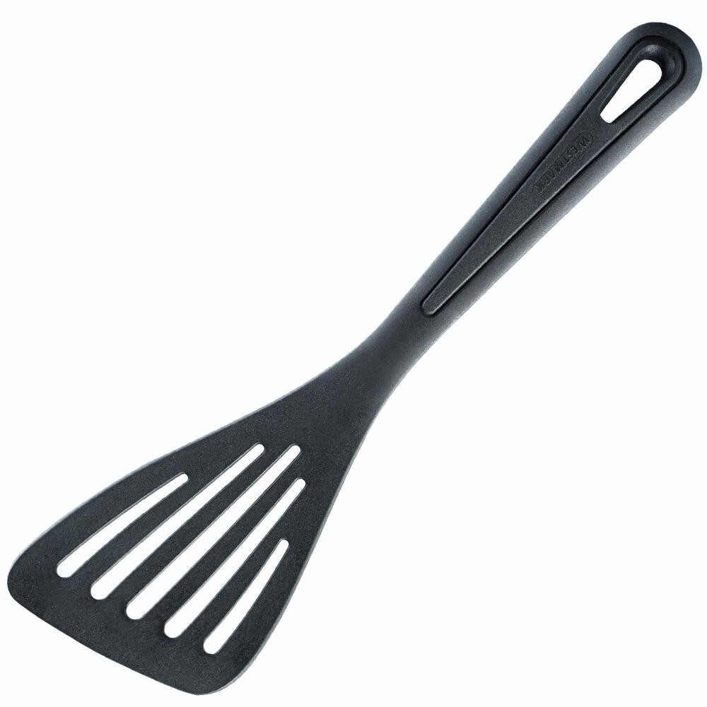 • Leichter und schmaler Pfannenwender zum Wenden Ihrer Speisen in der Pfanne und zum Servieren am Tisch, Hohe Hitzebeständigkeit (270°C) für den Einsatz in der Profiküche • Kein Zerkratzen von antihaftbeschichtetem Kochgeschirr durch Kunststoffmaterial, Verfärbungsresistent • Angenehmer Halt und ergonomisches Arbeiten durch langen, abgerundeten Griff, Platzsparend verstaubar dank Aufhänge-Öse • Made in Germany; Langlebig, Sorgfältig solide Verarbeitung, Einfache Reinigung, Spülmaschinengeeignet • Pflegehinweis: spülmaschinengeeignet