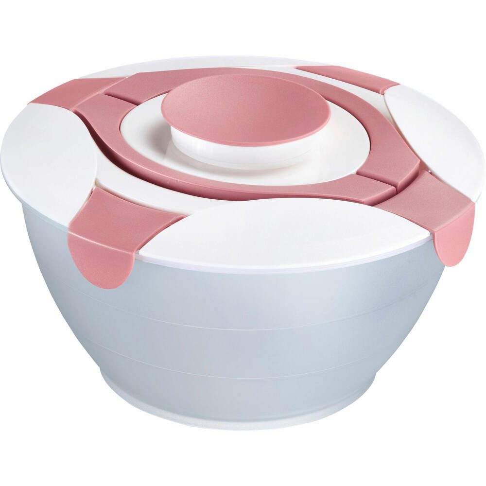 • Multifunktionale Salatschüssel mit Deckel, integrierten Griffen und Dressing-Behälter zum Frischhalten, Servieren und Transportieren von Salat, Auch für Obst und Desserts geeignet • Große, transparente Schüssel (Volumen: 6,5 Liter) mit Deckel zum Aufbewahren und Zubereiten großer Mengen Salat, Einfaches Спрятать des Deckels durch 4 Klappverschlüsse, Große, runde Griffe am Deckel für leichtes Transportieren • Immer knackiger Blattsalat: Kleiner, herausnehmbarer Dressing-Behälter mit apfelgrünem Deckel (Volumen: 0,3 Liter) für frisches Anmachen von Salaten • Made in Germany: Leichtes Reinigen von Hand, Spülmaschinengeeignet • Lieferumfang: 1x Westmark Salatbutler, Praktika, 6,5 Liter,Material: Kunststoff (PP,PE), Farbe: Transparent/Weiß/Rosa, 2422227R • Pflegehinweis: spülmaschinengeeignet Длина: 30,5 cm Breite: 30,5 cm Höhe: 18,8 cm