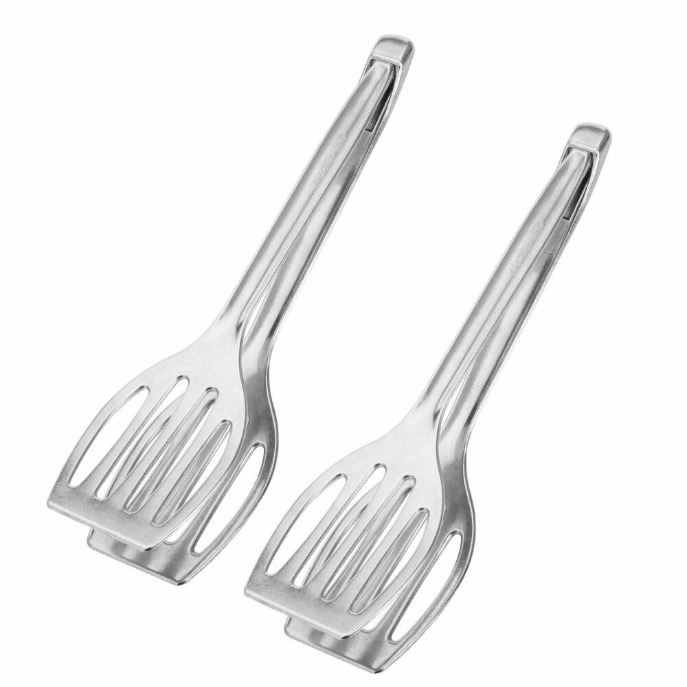 Der handliche Doppelwender dient gleichzeitig als Grillzange und darf in keiner Küche fehlen: Mit dem leichten und schmalen Doppel-Schlitzwender lassen sich Speisen unkompliziert und schnell in der unbeschichteten Bratpfanne oder auf dem Grill wendenn und am Tisch servieren. Beide Wenderelemente sind mit einem Einsteckgelenk verbunden und lassen sich beliebig voneinander trennen. So kann das Produkt als Einzelwender oder Zange genutzt werden. Durch den äußerst robusten Aluminiumdruckguss ist der Doppelwender hitzebeständig bis 450 Grad.