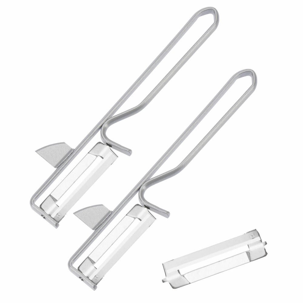 • 2 Universal-Sparschäler zum Schälen von rundem oder länglichem Obst und Gemüse wie Kartoffeln, Gurken, Spargel, Äpfel etc., geeignet für Rechtshänder, inkl. Ausstecher für Schadstellen • Die pendelnd gelagerte Klinge passt sich automatisch den Konturen des Lebensmittels an und schält somit sparsam, das Schnittgut wird sauber abgetrennt und verstopft nicht die Klinge • 1 kompletter Pendler mit aufgeschweißter Klinge als Ersatz inklusive, Griff und Rahmen des Schälers sind aus hochwertigem Stahl und die Klinge aus Rostfreiem Edelstahl, inklusive Klingenschutz • Made in Germany: Langlebig, Sorgfältig solide Verarbeitung, Einfache Reinigung per Hand, Nicht spülmaschinengeeignet • Pflegehinweis: Handwäsche empfohlen