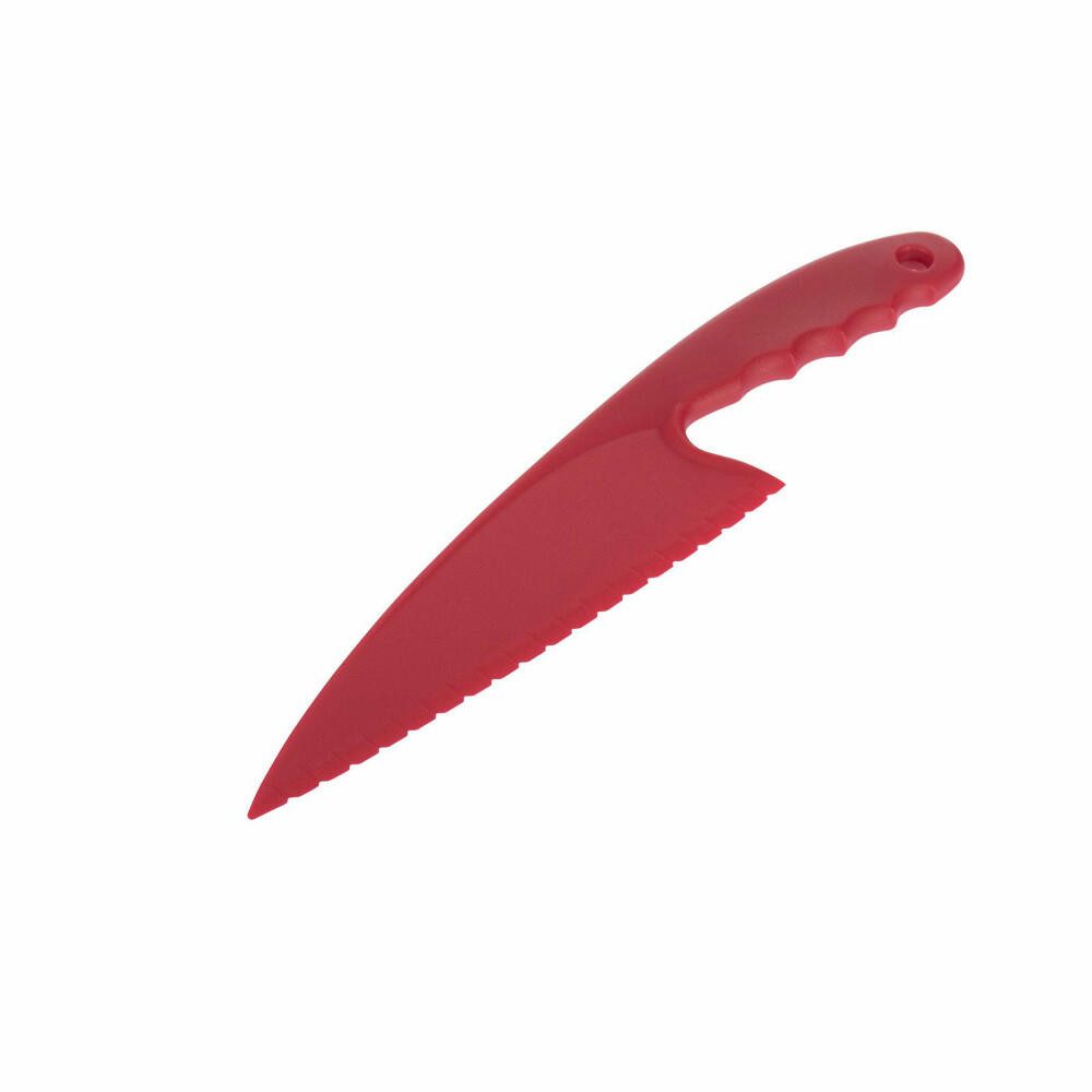 Wer kennt es nicht - das vorsichtige Hantieren mit Messern auf den Kuchenblechen. Nur keinen Kratzer riskieren. Schluss damit! Mit unserem Kuchenmesser können Sie Ihre Kuchen und Tartes sorglos in der Backform schneiden. Das Kunststoffmaterial sorgtdafür, dass die Beschichtungen keine Kratzer bekommen. Dank der breiten Messerform können Sie Ihre Kuchenstücke mühelos aus der Form herausheben und servieren. Nach der Nutzung lässt sich das Messer mühelos in der Spülmaschine reinigen und platzsparend an der Aufhänge-Öse in Ihrer Küche verstauen.