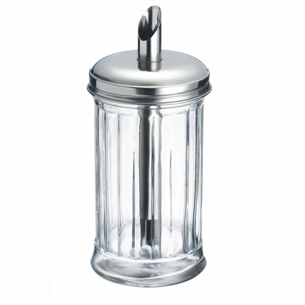 • Zuckerdosierer mit edlem Design zum perfekten Dosieren von Zucker, ideal für die Gastronomie und den privaten Gebrauch • Fassungsvermögen von 300 ml, Deckel aus hochwertigem, rostfreiem Edelstahl • Gute Handhabung durch kompakte Maße, Sicherer Griff dank geriffeltem Glas • Einfache Reinigung, da in Einzelteile zerlegbar, spülmaschinengeeignet • Pflegehinweis: spülmaschinengeeignet