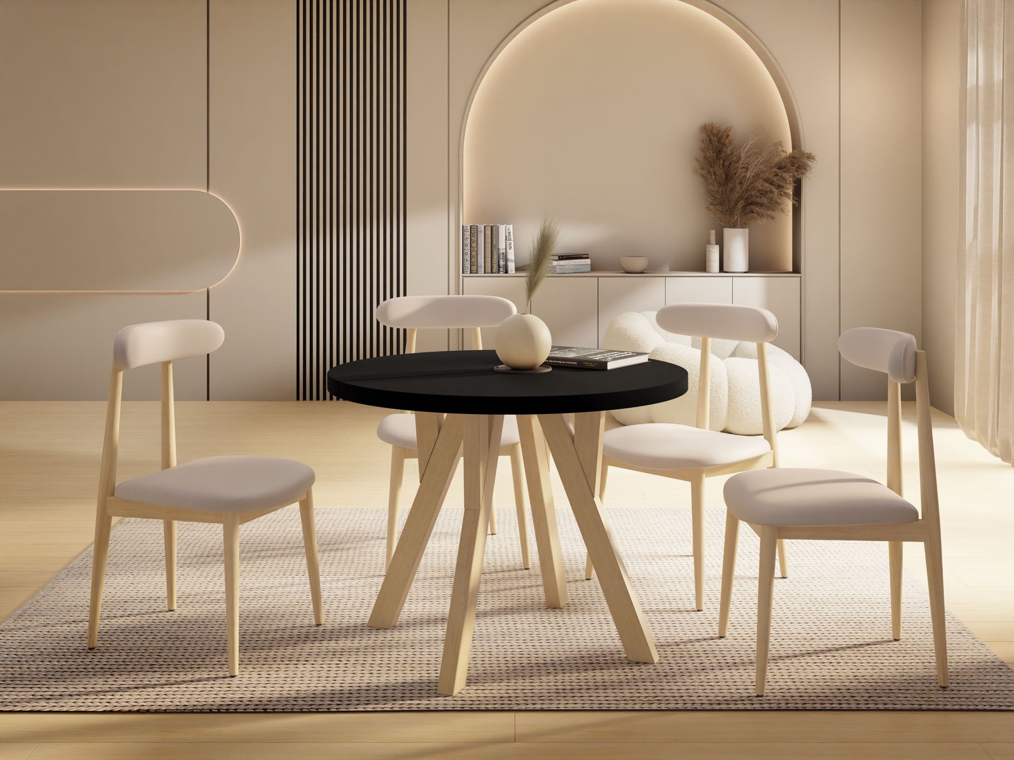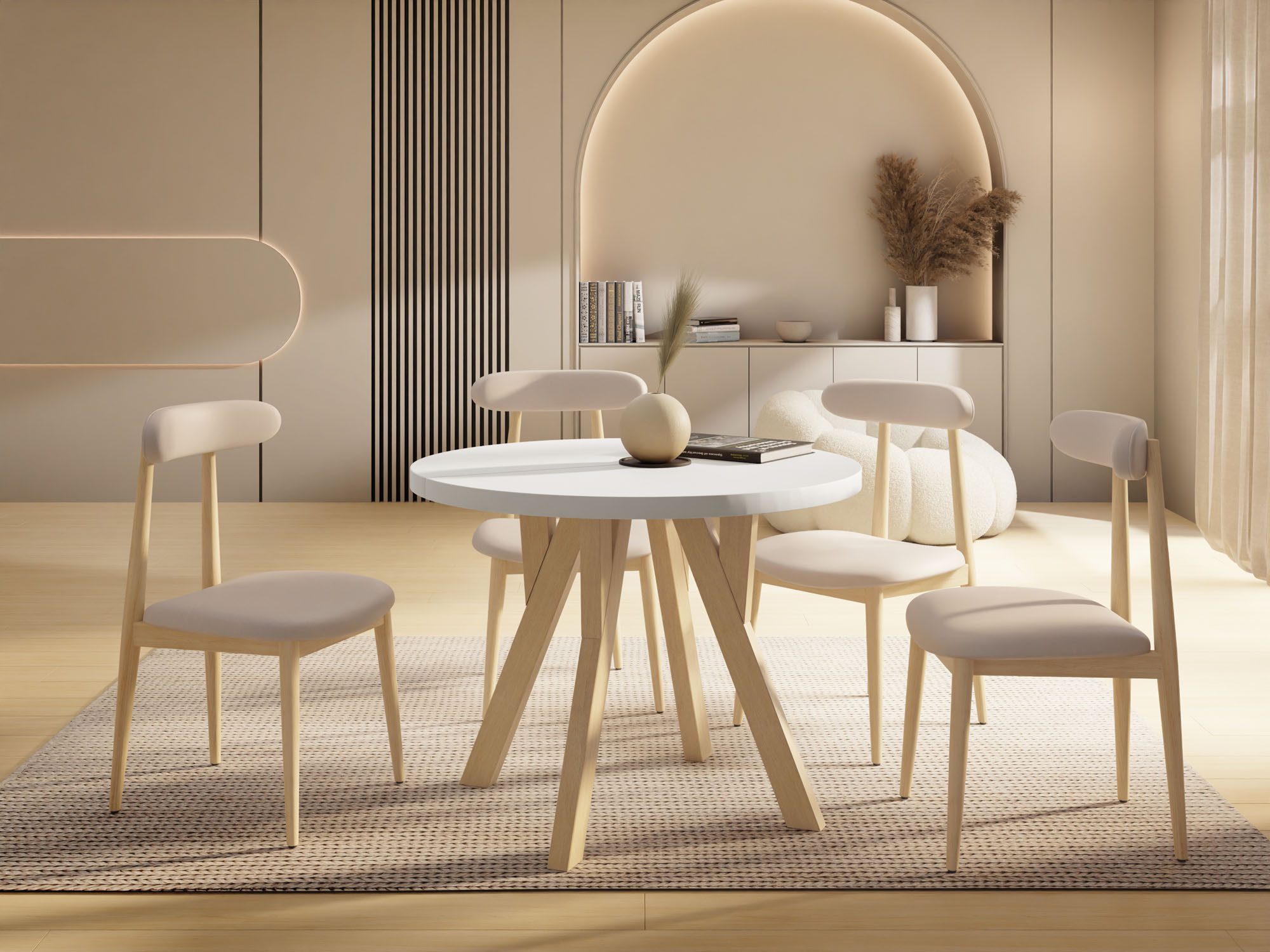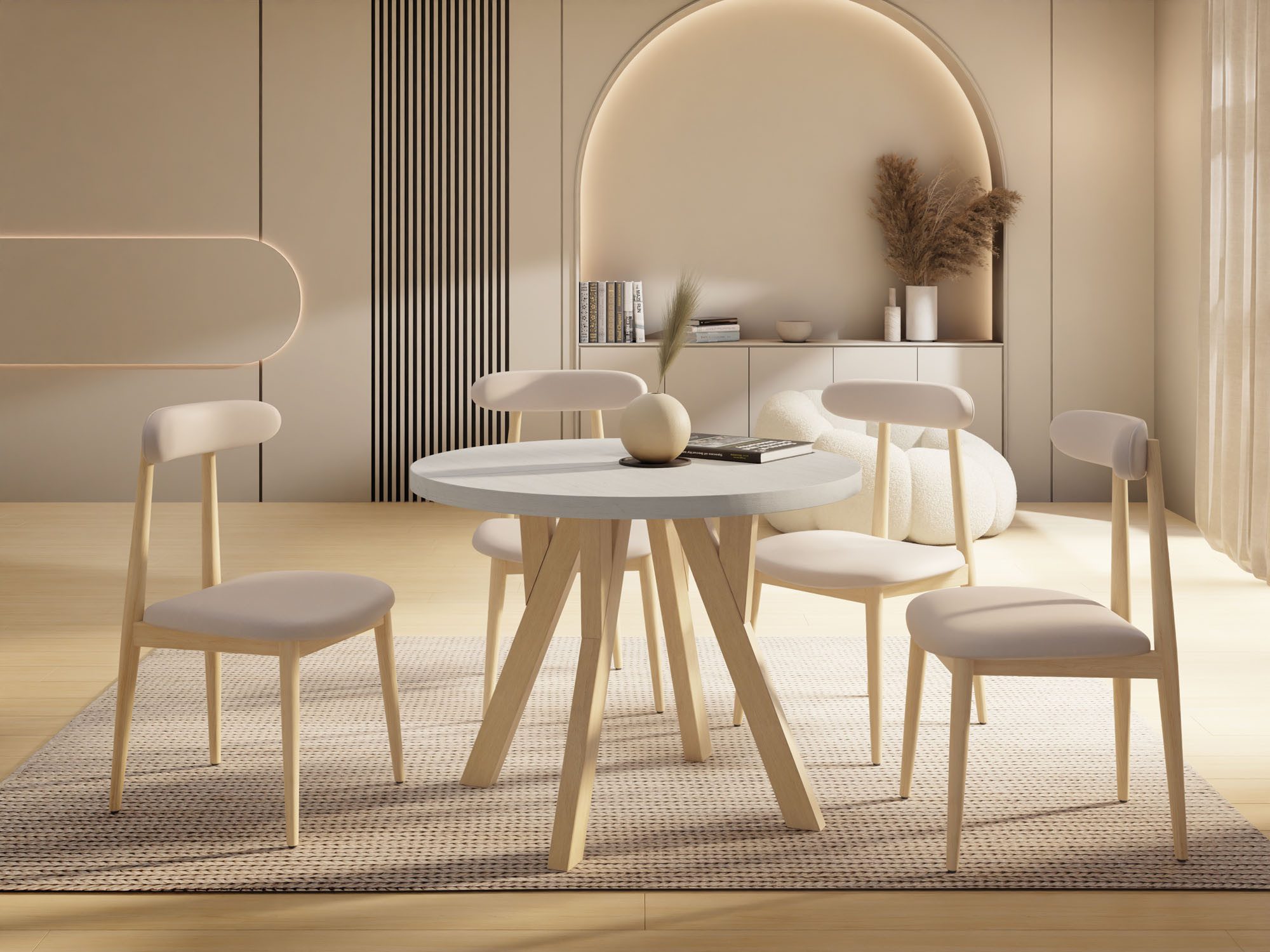 Das klare Design mit Massivholzbeinen und der eleganten Tischplatte macht ihn zu einem echten Blickfang in jedem Raum. Ob in der Küche, im Esszimmer, im Wohnzimmer oder im Homeoffice – dieser Tisch fügt sich harmonisch in verschiedenste Einrichtungsstile ein, von modern bis skandinavisch.
