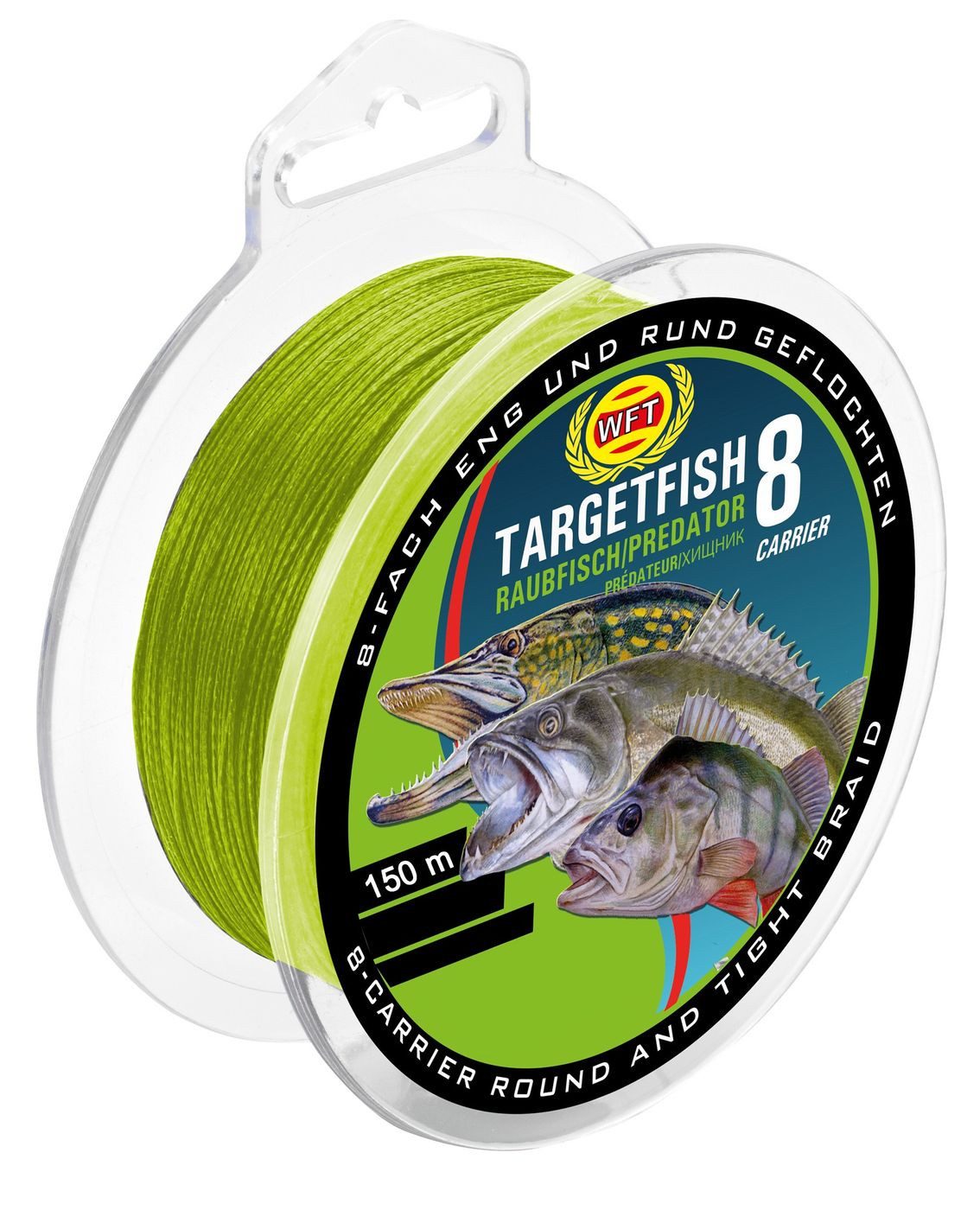WFT TF8 Raubfisch Schnur chartreuse 150m - Eng geflochtene Schnur, die sich für jeden Zielfisch einsetzen lässt. Besonders gut geeignet für das Angeln auf Raubfische. Dank ihrer 8-fach Flechtung ist die TF8 sehr geschmeidig, ohne dabei zu weich zu sein. Sie gleitet leise durch die Ringe! Da sie wenig Wasser aufnimmt, sind hohe Wurfweiten und genaue Bisserkennung möglich. Eine gute Angelschnur mit hoher Farbstabilität, guter Knotenfestigkeit und starker Abriebsfestigkeit.