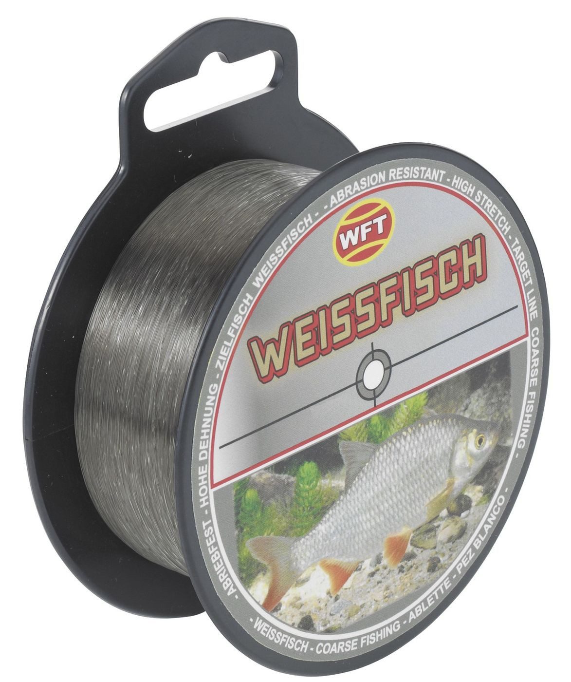 WFT Zielfisch Weißfisch 500m - Die WFT Zielfisch Weißfisch 500m ist eine, von der Dehnung und den Tragkräften auf Weißfisch abgestimmte, Angelschnur. Die Farbe lässt die Schnur fasst unsichtbar werden, sodass kaum ein Fisch von der Angelschnur gestört wird. Die Schnur ist sehr geschmeidig und lässt sich sehr gut knoten.