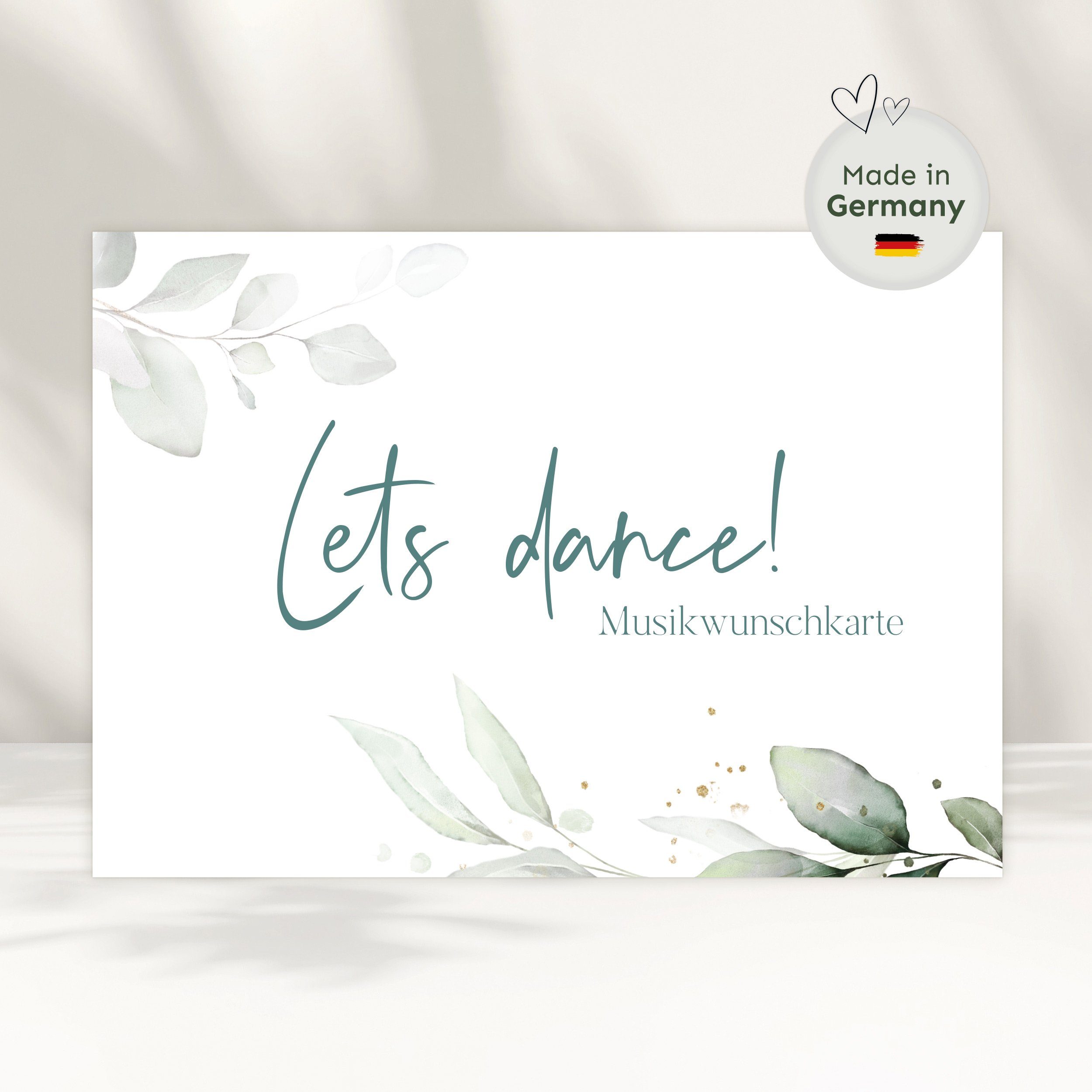 50x Musikwunschkarten mit dem Aufdruck „Let’s dance“ in dem Design „Eukalyptus türkis“ von der Marke „white&ivory“