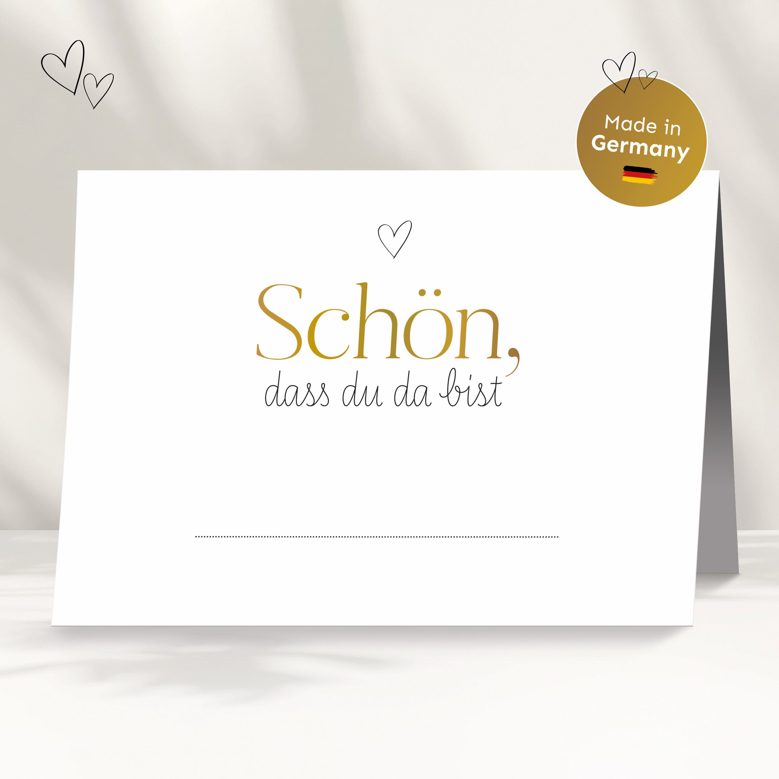 Set mit jeweils 50 Namenskarten Schön, dass du da bist - Herz gold