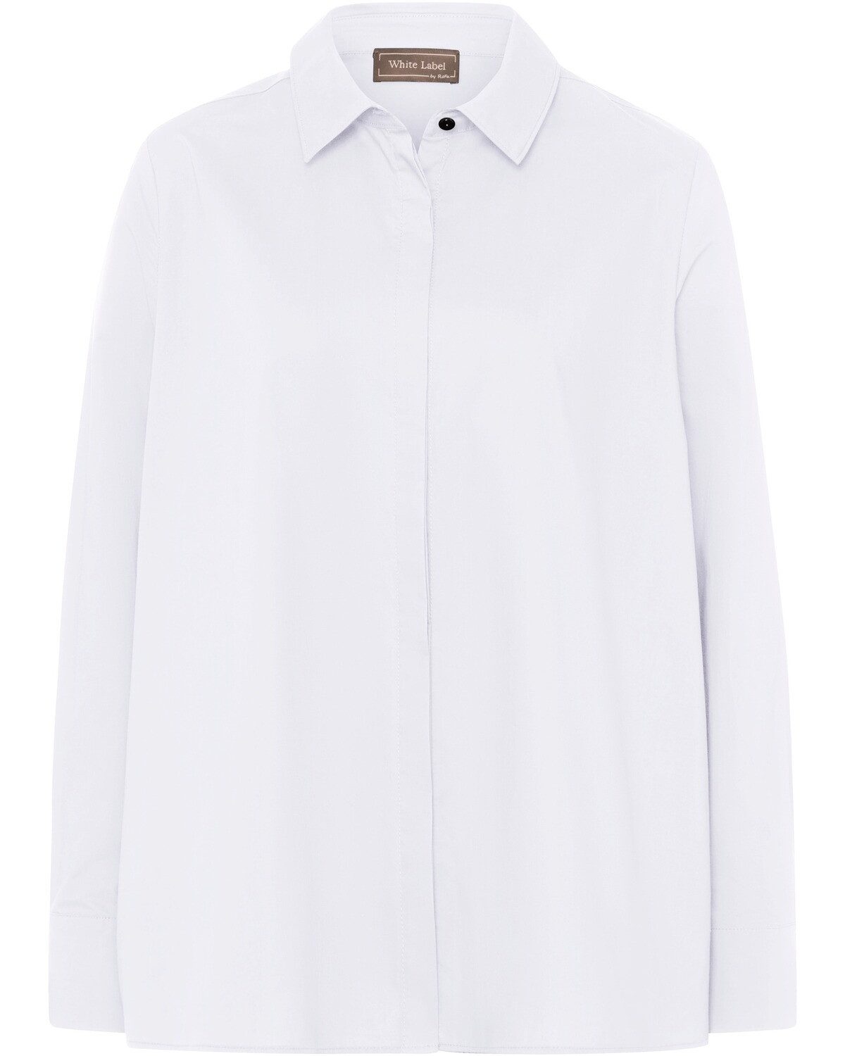 Die Hemdbluse von White Label ist ein zeitloses Kleidungsstück, das durch seine klassische Eleganz und hochwertige Verarbeitung überzeugt. Gefertigt aus reiner Baumwolle, bietet sie ein angenehmes Tragegefühl und sorgt für Atmungsaktivität und Komfort den ganzen Tag über. Die Bluse ist gerade geschnitten, was eine lässige, aber dennoch strukturierte Silhouette ermöglicht. Der traditionelle Hemdblusenkragen und die verdeckte Knopfleiste verleihen der Bluse einen cleanen und eleganten Look. Besondere Details wie die langen Ärmel mit Manschetten und der in Falten gelegte Rücken am Schultersattel sorgen für einen lockeren Fall und erhöhen den Tragekomfort. Diese Bluse eignet sich hervorragend sowohl für formelle Anlässe als auch für den Alltag, da sie mühelos mit verschiedenen Outfits kombiniert werden kann. Ob im Büro oder in der Freizeit, die Hemdbluse von White Label ist eine vielseitige Ergänzung für jede Garderobe, die durch schlichte Raffinesse besticht. Oberstoff: 100% Baumwolle
