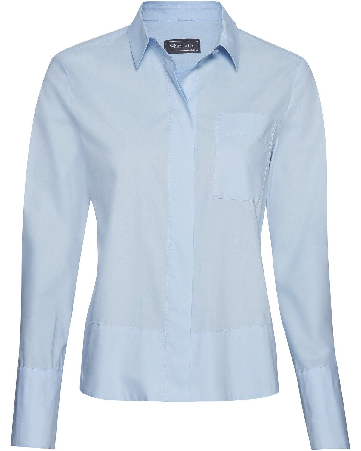 Stilvolle Eleganz für den Alltag entdecken Diese Damen Hemdbluse von White Label zeichnet sich durch ihre schlichte Eleganz aus. Die verdeckte Knopfleiste sorgt für einen aufgeräumten Look, während die langen Ärmel mit breiten Manschetten einen modernen Touch verleihen. Die aufgesetzte Brusttasche bietet eine dezente Möglichkeit, Kleinigkeiten griffbereit zu halten. Der klassische Hemdblusenkragen ergänzt den stilvollen Auftritt und schafft zusammen mit der Schulterpasse einen harmonischen Gesamteindruck. Besonderes Detail für mehr Komfort Ein besonderes Highlight dieser Hemdbluse ist die Kellerfalte im Rücken. Diese sorgt nicht nur für zusätzlichen Tragekomfort, sondern verleiht dem Gesamtbild auch eine besondere Note. Der Schnitt gewährleistet Bewegungsfreiheit und macht die Bluse zu einem vielseitigen Kleidungsstück, das sich sowohl für den Berufsalltag als auch für die Freizeit eignet. Vielseitigkeit und zeitlose Ästhetik Mit ihrer zurückhaltenden Eleganz lässt sich diese Hemdbluse mühelos mit vielen Outfits kombinieren. Sei es zu einer klassischen Anzughose für das Büro oder zu einer lässigen Jeans für die Freizeit, sie bietet zahlreiche Stylingmöglichkeiten. Die hochwertigen Materialien und die sorgfältige Verarbeitung machen dieses Kleidungsstück zu einem zuverlässigen Begleiter für verschiedenste Anlässe. Die Hemdbluse vereint dabei Funktionalität und Ästhetik in einem zeitlosen Design. Oberstoff: 100% Baumwolle