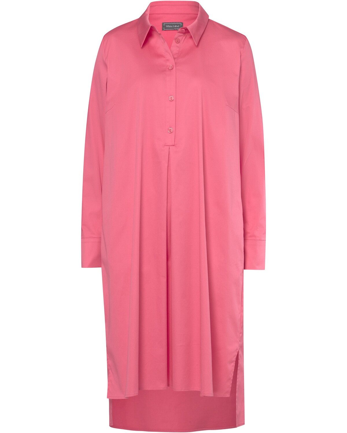 Das Damen Kleid von White Label vereint stilvolles Design mit hohem Tragekomfort und ist aus hochwertigem Baumwoll-Elasthan gefertigt. Die H-Linie sorgt für eine schmeichelhafte Silhouette, während der Umlegekragen und die kurze Knopfleiste in der vorderen Mitte dem Kleid eine elegante Note verleihen. Die Quetschfalte unterstreicht den femininen Charakter und sorgt gleichzeitig für eine optimale Bewegungsfreiheit. Praktische Eingriffstaschen in der Seitennaht bieten nicht nur Funktionalität, sondern setzen auch einen lässigen Akzent. Die Rückenpasse mit Kellerfalte in der hinteren Mitte sorgt für eine perfekte Passform und lässt das Kleid angenehm fallen. Die Ärmel mit Manschette runden das Design ab und verleihen dem Kleid eine raffinierte Ausstrahlung. Ein besonderes Merkmal dieses Kleides ist der asymmetrische Schnitt, bei dem die Rückseite länger als die Vorderseite ist. Die seitlichen Schlitze bieten zusätzliche Bewegungsfreiheit und tragen zu einem modernen Look bei. Ideal für verschiedene Anlässe, lässt sich das Kleid sowohl elegant als auch lässig kombinieren und wird schnell zum Lieblingsstück in jeder Garderobe. Oberstoff: 97% Baumwolle, 3% Elasthan
