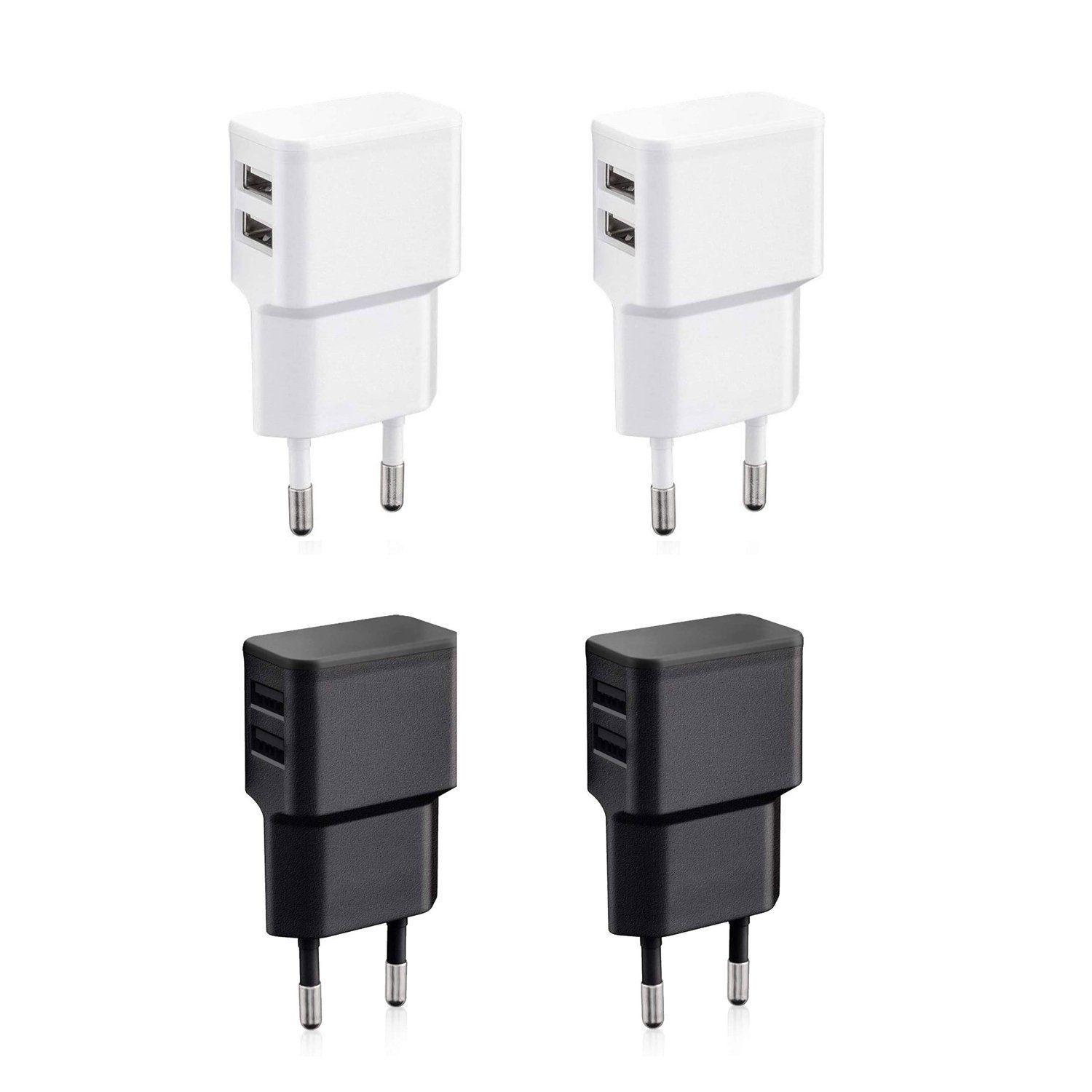 Lieferumfang | 4x Wicked Chili Dual-USB-Netzstecker / Ladegerät für EU Steckdosen mit 2 USB-Ports Maße: 71,5 x 37 x 22,4 mm, Gewicht 34g Eingang: 100-200V, 0,5 A Ausgang: 2x 5V. Total 2,4 Ampere. Farbe: weiss |
