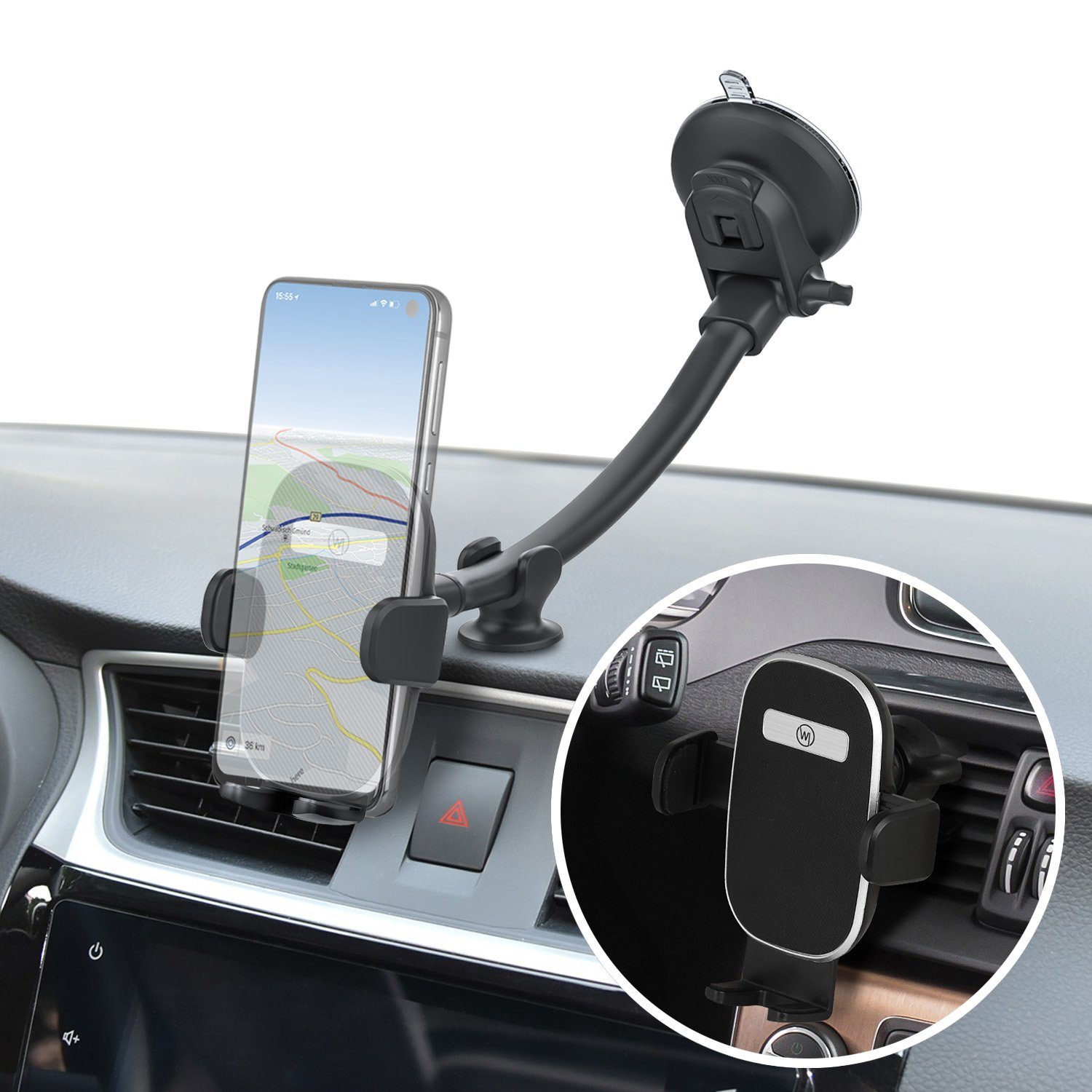 2in1 Handy Halterung für Windschutzscheibe, Armaturenbrett oder Lüftung