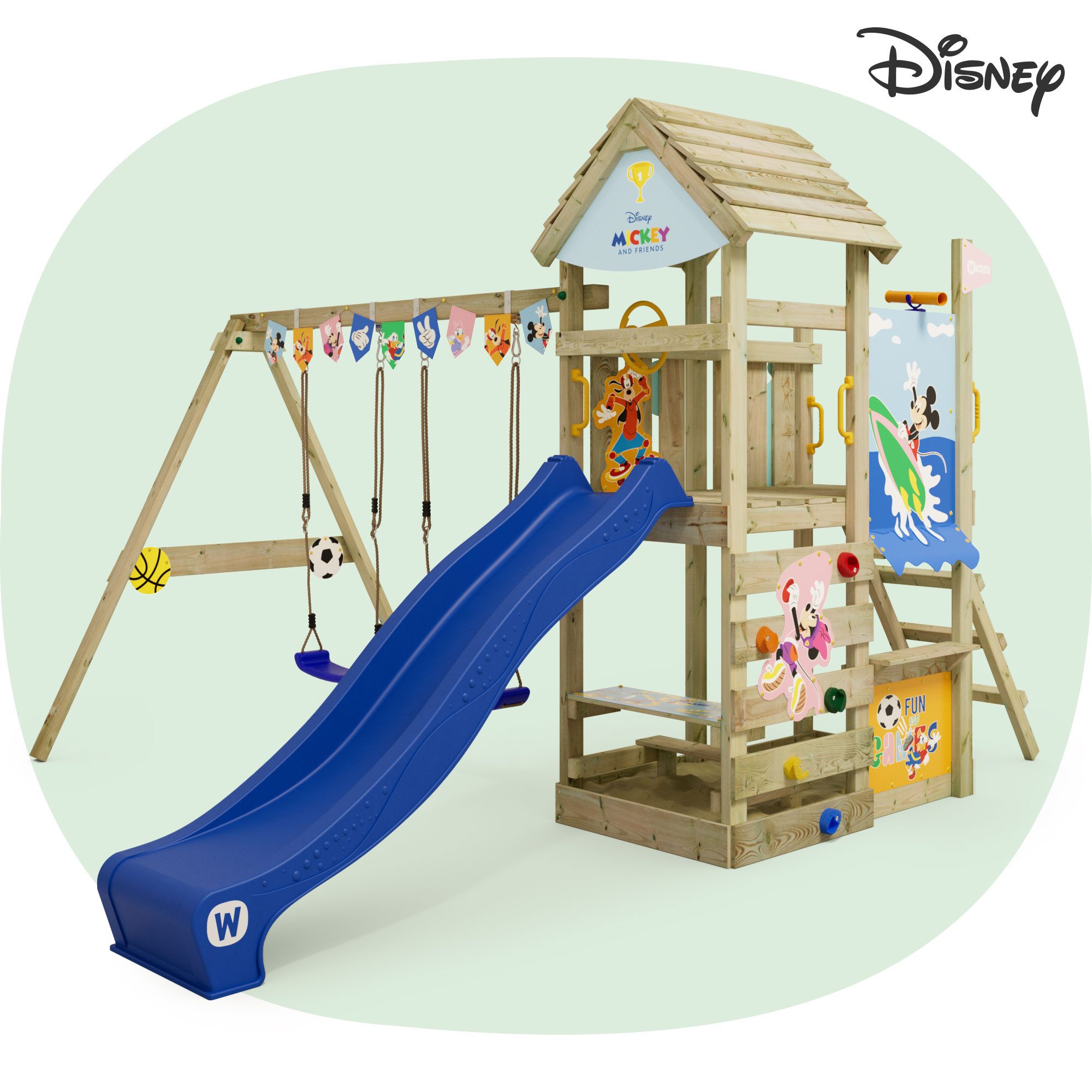 Lieferumfang | Kletterleiter Klettersteine Wellenrutsche Teleskop Wasseranschluss Holzdach Rennlenker Sicherheitskappen Sandkasten Schaukelsitze Montageanleitung Schaukelschellen Sicherheitshandgriffe Schrauben Kletterwand |