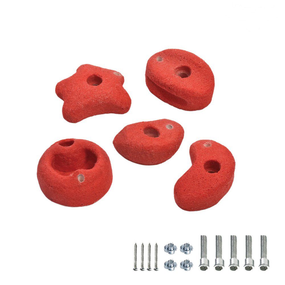 Wer eine großartige Kletterwand im Garten haben möchte, der braucht vor allem eines: Klettersteine! Dieses Set umfasst 5 Klettersteine mit einem Durchmesser von 90 mm, die mithilfe der mitgelieferten Schrauben und Muttern schnell und einfach befestigt werden können. Aufgrund des witterungsbeständigen Materials sind Wind und Regen für die Klettersteine gar kein Problem. Ist die Kletterwand samt Klettersteine erst aufgebaut, gibt es kein Halten mehr für Ihre kleinen Bergsteiger.
