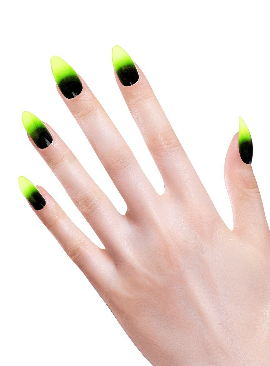 Lieferumfang | - eine Packung Stiletto Fingernägel giftgrün- mit zwölf selbstklebenden Fingernägeln- Einheitsgröße für Erwachsene |