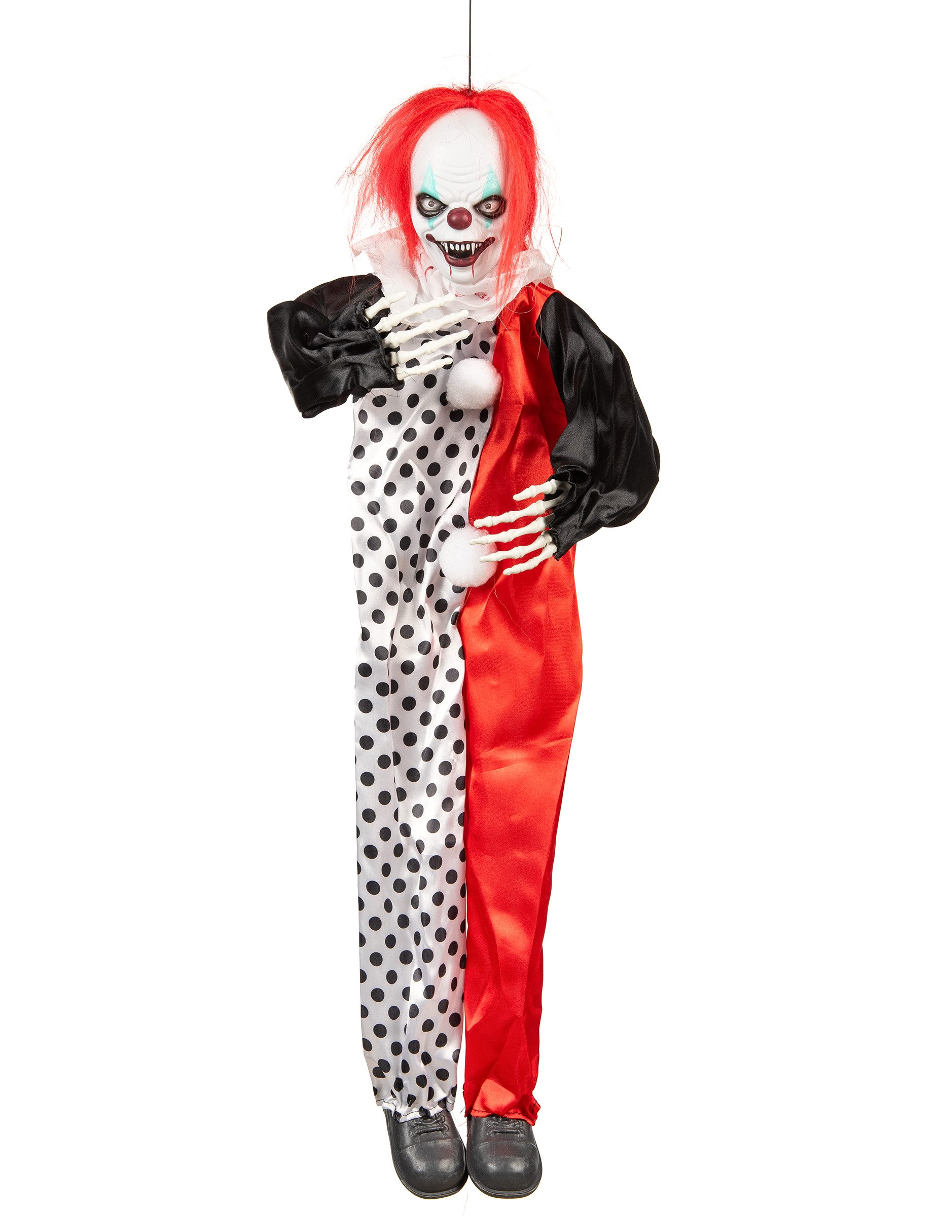 Es ist Halloween und Sie wollen die Puppen tanzen lassen, und zwar im richtig großen Stil? Da haben wir etwas für Sie! Diese Grusel-Dekoration ist definitiv unübersehbar. Die Zombie Harlekin Puppe sorgt mit 90cm Размер und den leuchtenden Horror-Augen für den ultimativen Horror-Effekt. Mit ihrer schwarz-weiß-roten Kleidung, dem weißen, verwest aussehenden Gesicht und den knochigen Fingern ist diese Riesenfigur Halloween-Puppe ein absoluter Horror-Schocker. Der Halloween-Harlekin starrt seinen Betrachter mit irrem Blick und weit aufgerissenem Mund an und man wartet nur darauf, dass er seine knochigen Hände ausstreckt und zupackt. Besonders gruselig sind auch die langen, vampirartigen Eckzähne des Dekofigur. Diese Halloween-Puppe hat eine unvergleichliche Wirkung, auch auf hartgesottene Horror-Fans und Grusel-Fanatiker. Die Dekopuppe lässt sich in jeder Ecke platzieren und sorgt garantiert für Gänsehaut! BeiBetrieb leuchten die batteriebetriebenen Augen (Batterien nicht enthalten) und sorgen für schauriges Licht! Sie kann zu jeglichem Grusel-Event und Horror-Anlass verwendet werden und ist immer ist eine einzigartige Schocker-Dekoration, die auf jeder Halloween-Party eine einmalige Wirkung erzielen wird. Achtung! Nicht für Kinder unter drei Jahren geeignet. Kann Kleinteile enthalten - Erstickungsgefahr. Copyright by Widmann S.R.L.