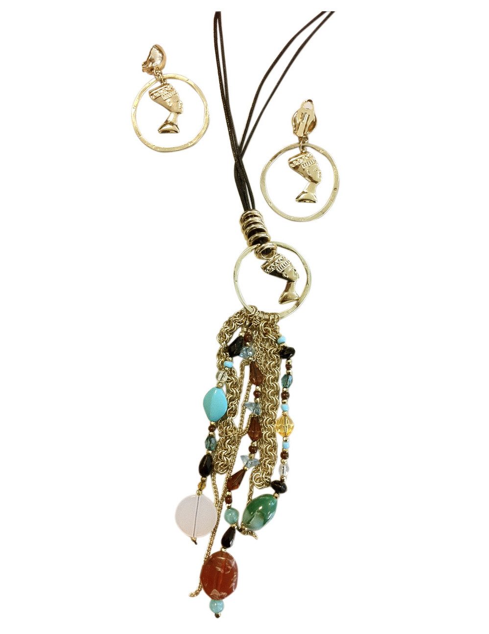 < Copyright by Widmann S.R.L.> Lieferumfang: 1 Schmuck-Set Cleopatra Halskette und Ohrringe gold-türkis. Farbe: Gold/Türkis. Material: Metall. Eine echte Pharaonin zeigt gern, was Sie hat! Auch auf der nächsten Kostümfete wird sie sich nicht zurückhalten, ihren unermesslichen Luxus und Ihre märchenhafte Machtfülle mit diesem sensationellen Partyschmuck-Set zum Ausdruck zu bringen! Dieses atemberaubende Schmuck-Set kommt mit einer Pharaoninnen-Kette, die es in sich hat: Zunächst ist da der wunderbare kreisrunde Anhänger aus Metall, in dem das Konterfei einer ägyptischen Herrscherin zu erkennen ist. An dem Anhänger sind goldfarbene Schmuckkettchen befestigt, an denen Schmucksteine appliziert sind. Diese kommen in ganz verschiedenen Größen und Farben, sodass diese Pharaoninnen-Halskette erst einmal zum Staunen einlädt! Ebenfalls im Lieferumfang enthalten sind zwei goldfarbene Ohrringe, die das gleiche Design wie der Anhänger aufweisen - ein traumhaft schöner Anblick! Ob auf der nächsten Faschings- oder Mottoparty: Wo immer Sie diesen großartigen Schmuck anlegen, verwandeln Sie sich in eine edle Herrscherin! Впередe fantastische Damenkostüm-Accessoires finden Sie natürlich in unserem ! Achtung! Nicht für Kinder unter drei Jahren geeignet. Kann Kleinteile enthalten - Erstickungsgefahr.