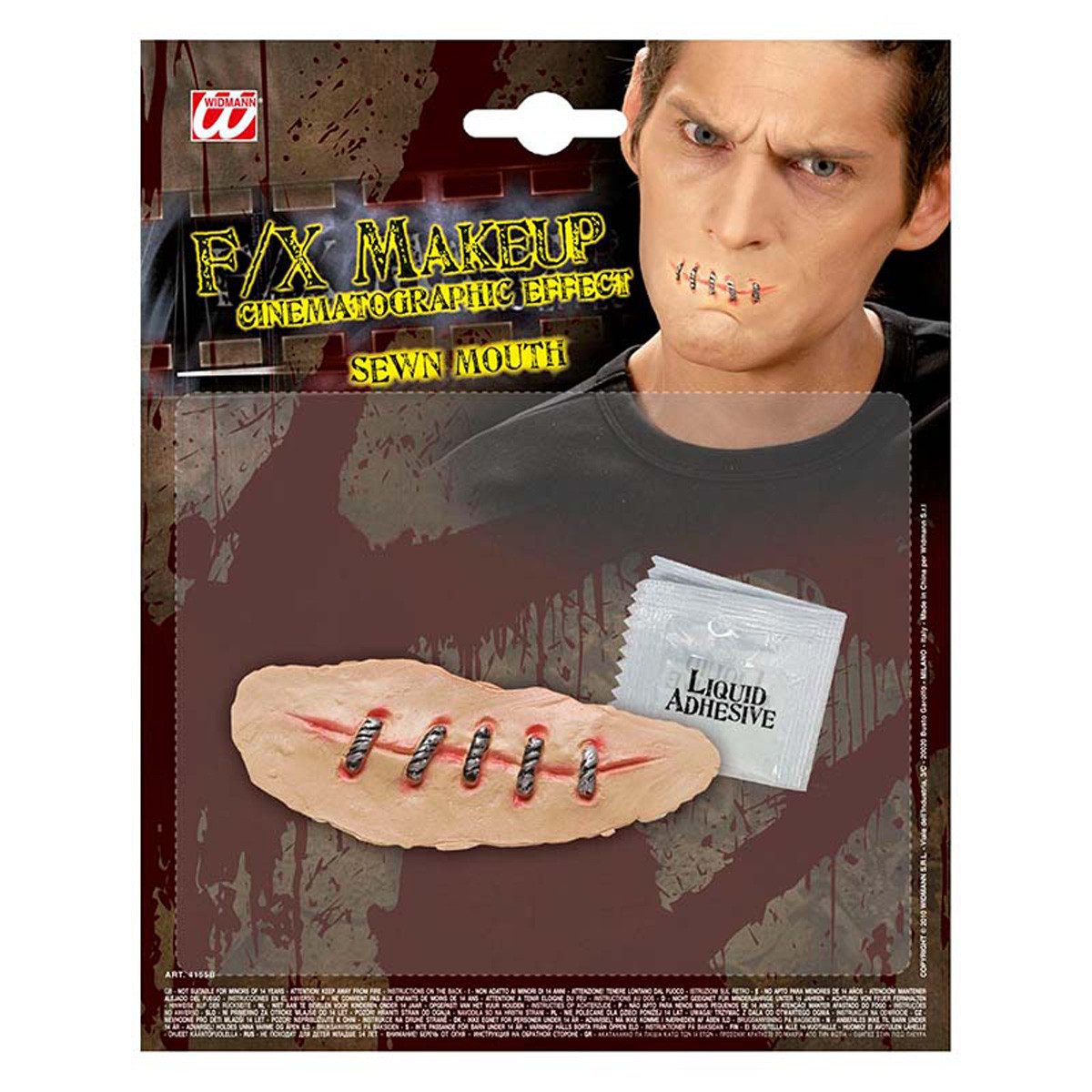 Erschaffe mit der realistischen Wunde „zugenähter Mund“ von Widmann S.r.l. einen schaurigen Look, der schockiert und fasziniert! Das Make-up-Accessoire ist ideal für Halloween, Horrorpartys, Karneval oder Cosplay-Events. Die täuschend echte Optik eines mit groben Stichen vernähten Mundes sorgt für einen Gänsehautmoment bei jedem Anblick. Ob als Teil eines Zombie-, Folter- oder Horrorfilm-Kostüms – dieser Effekt lässt dich aus der Masse herausstechen. Die Anwendung ist einfach: Die Wunde wird mit Hautkleber angebracht und kann mit Blutgel oder Schminke weiter veredelt werden. Hergestellt aus hautfreundlichem Latex bietet sie angenehmen Tragekomfort auch über längere Zeit. Widmann steht seit Jahren für hochwertige Kostümaccessoires mit Liebe zum Detail. Überzeuge dich selbst von der gruseligen Wirkung – perfekt für mutige Verkleidungen mit Stil!
