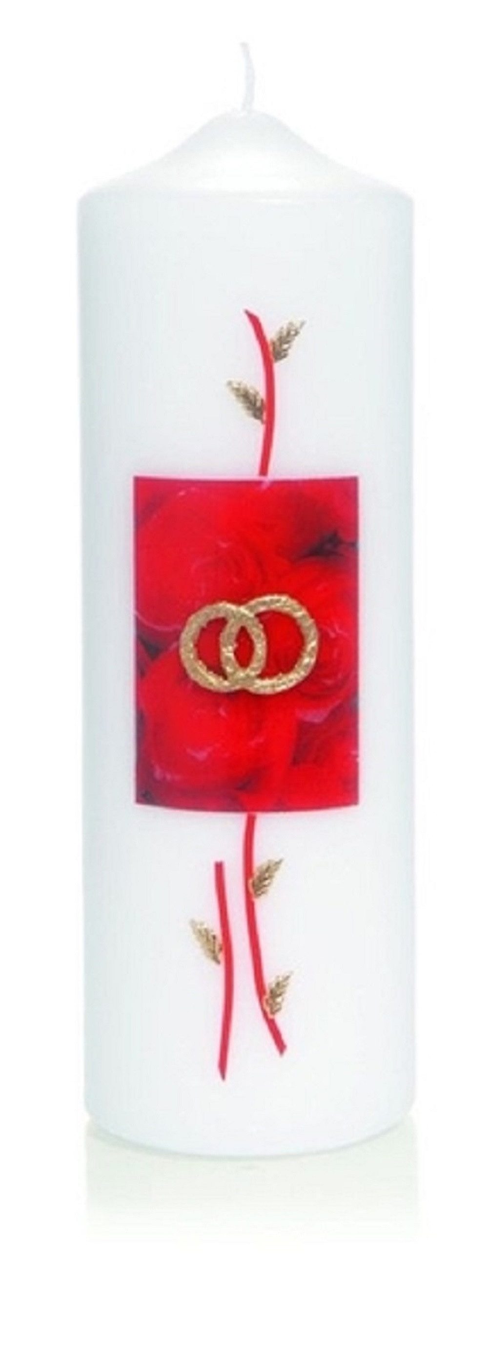 H001 HOCHZEITSKERZE 240/80mm Bild ROSEN und RINGE in gold