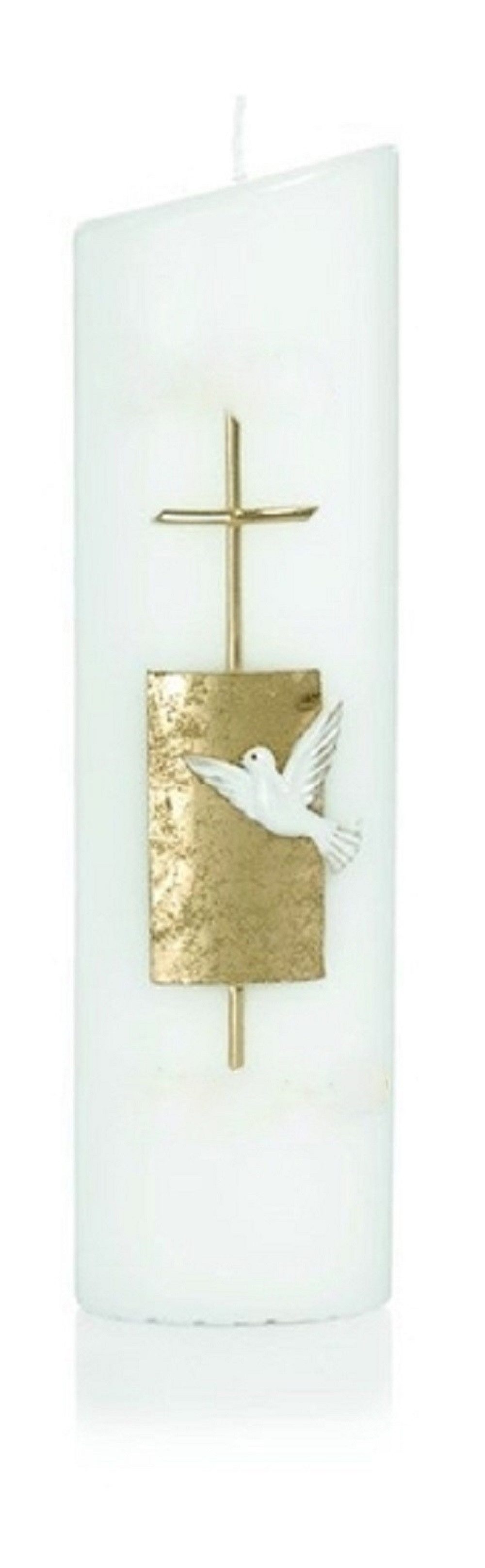 T007 TAUF-, KOMMUNION-, KONFIRMATION- Kerze 240/65mm ELLIPSE/oval KREUZ in gold und TAUBE