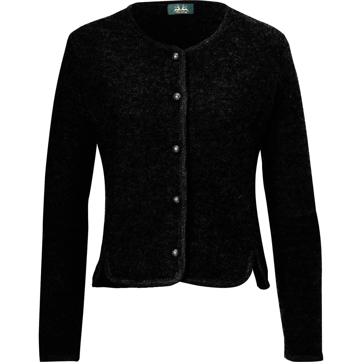Wiesnkönig's Trachtenjacke Waltraud verspricht mit ihrem edlen Walkstrick in Loden-Optik einen traditionell eleganten Look.