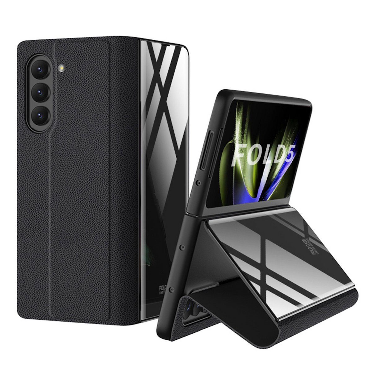 Stilvolle Sicherheit und praktische Eleganz für Ihr Samsung Galaxy Z Fold5 5G - Die Design Kunstleder Hülle in Schwarz mit Kreditkartenfach