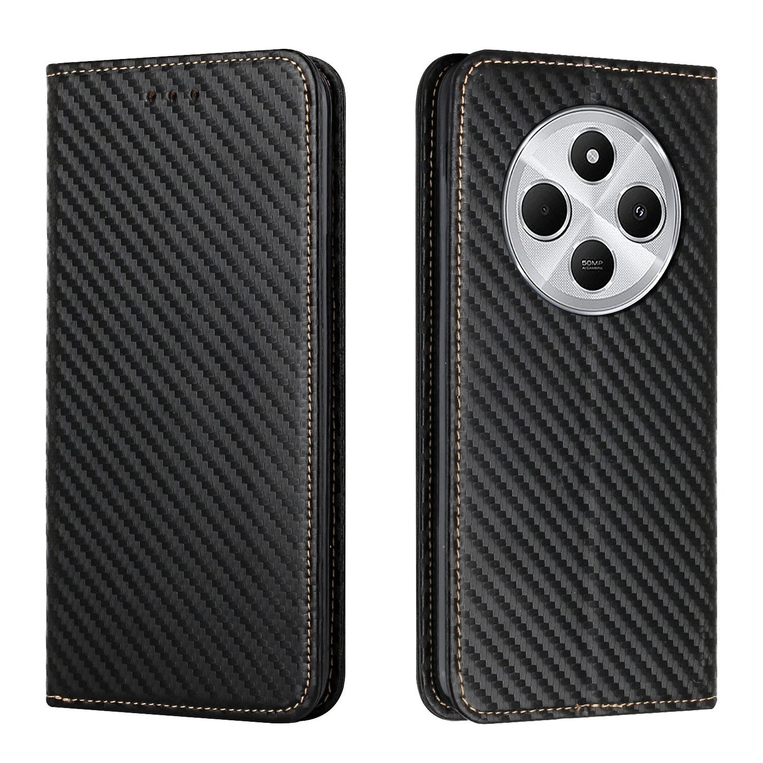 Für Xiaomi Redmi 14C Carbonfaser Flip Kunstlederhülle mit Kartenfächern
