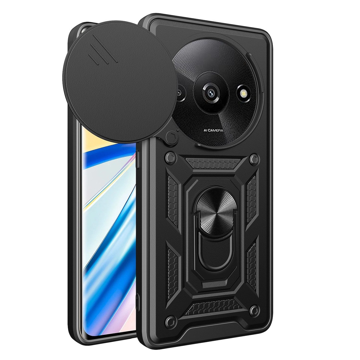 Schützen Sie Ihr Xiaomi Redmi A3 vor Stößen, Kratzern und Staub mit unserer robusten TPU/PC Handyhülle. Diese Hülle kombiniert erstklassigen Schutz mit praktischen Funktionen, darunter ein magnetischer Ringständer und eine innovative Kamera Schiebeabdeckung.