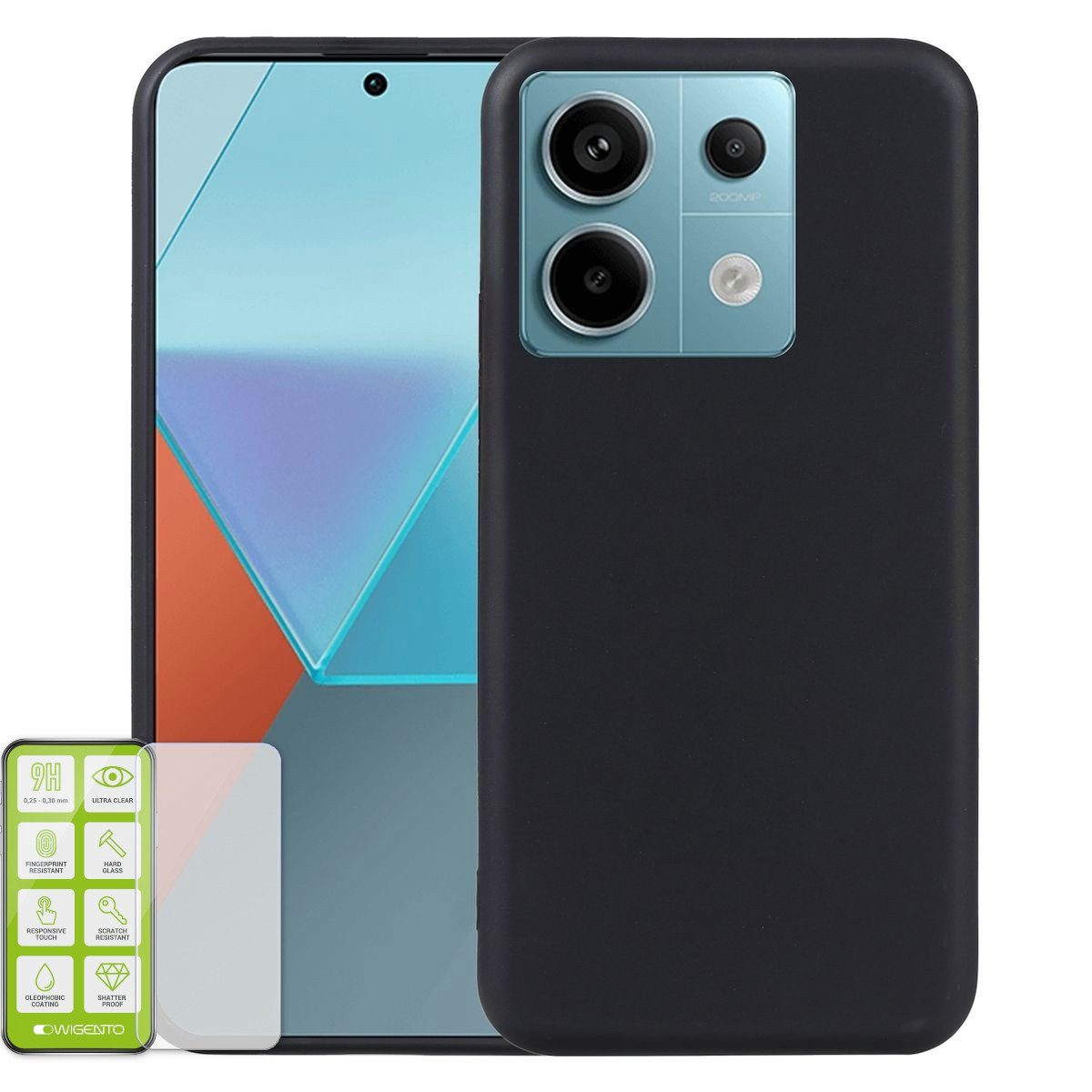 Hochwertiges 0,3 mm ultra dünn TPU Silikoncase für Xiaomi Redmi Note 13 Pro / Poco X6 + Hartglas Folie (0,26 mm extrem dünn, H9 extreme Härte)