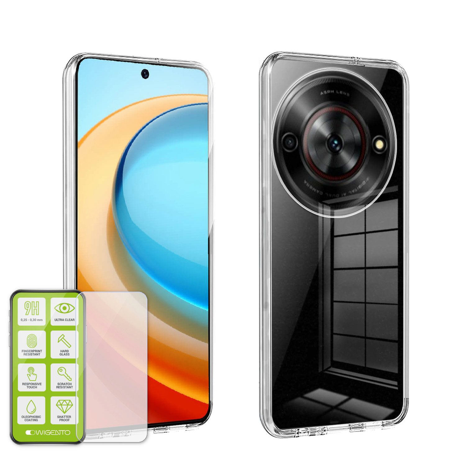 Hochwertiges 0,3 mm ultra dünn TPU Silikoncase für ZTE Blade A75 5G + Hartglas Folie (0,26 mm extrem dünn, H9 extreme Härte)