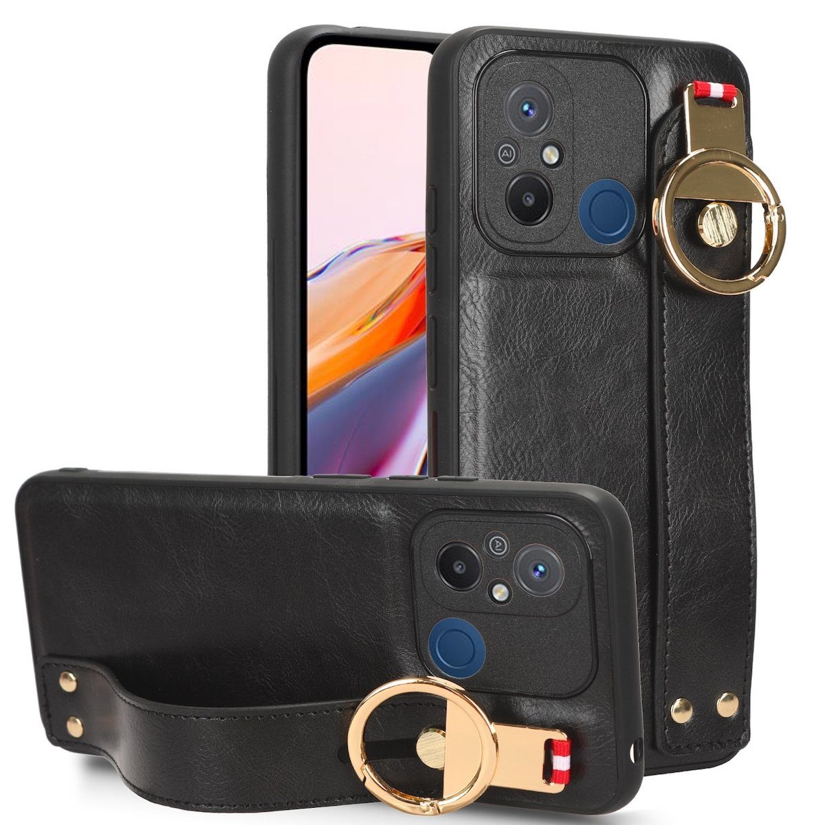 Dank der schicken Tasche für Ihr Xiaomi Redmi 12C haben Sie Ihr Handy mit der integrierten Armbandhalterung und der Ringhalterung zur Hand.