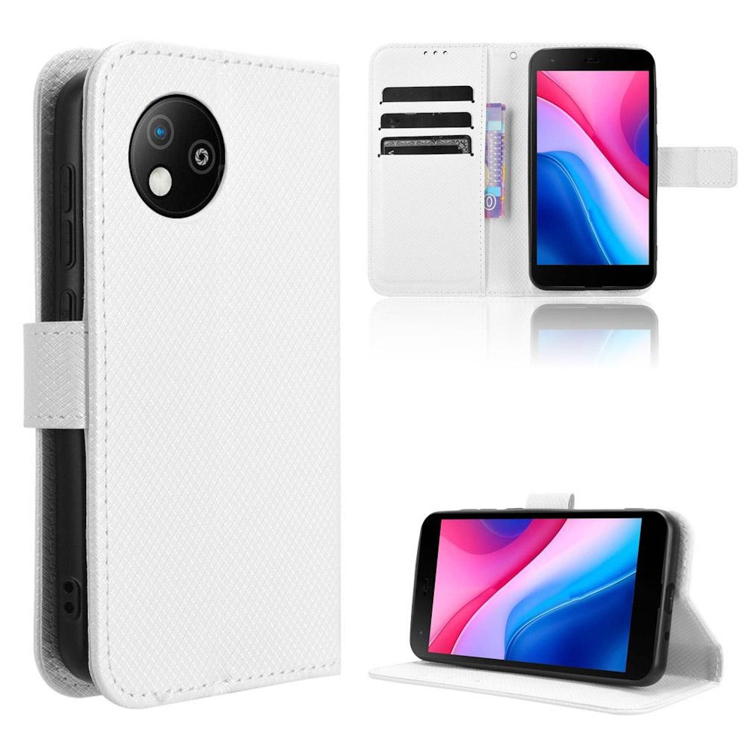 Diese elegante Hülle aus Kunstleder und TPU-Material bietet umfassenden Schutz für Ihr ZTE Blade A35 Lite. Die Diamantstruktur verleiht dem Gerät eine stilvolle Optik, während die Flip-Design-Funktion das horizontale Betrachten erleichtert. Mit Kartenfächern und Standfuß ausgestattet, ist die Hülle nicht nur funktional, sondern auch praktisch für den täglichen Gebrauch.