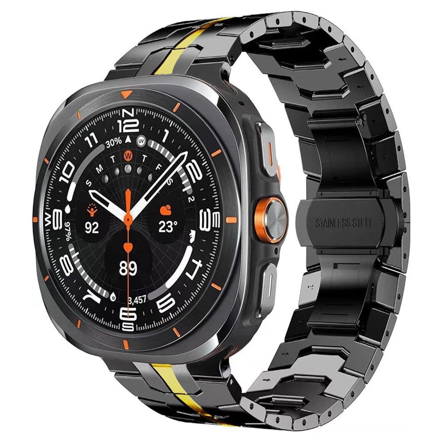 Dieses exklusive Titan Alloy Armband verleiht deiner Galaxy Watch 8 / 8 Classic einen eleganten und modernen Look. Es kombiniert hochwertige Materialien mit einer praktischen Butterfly-Schließe für einen sicheren Halt und hohen Tragekomfort.