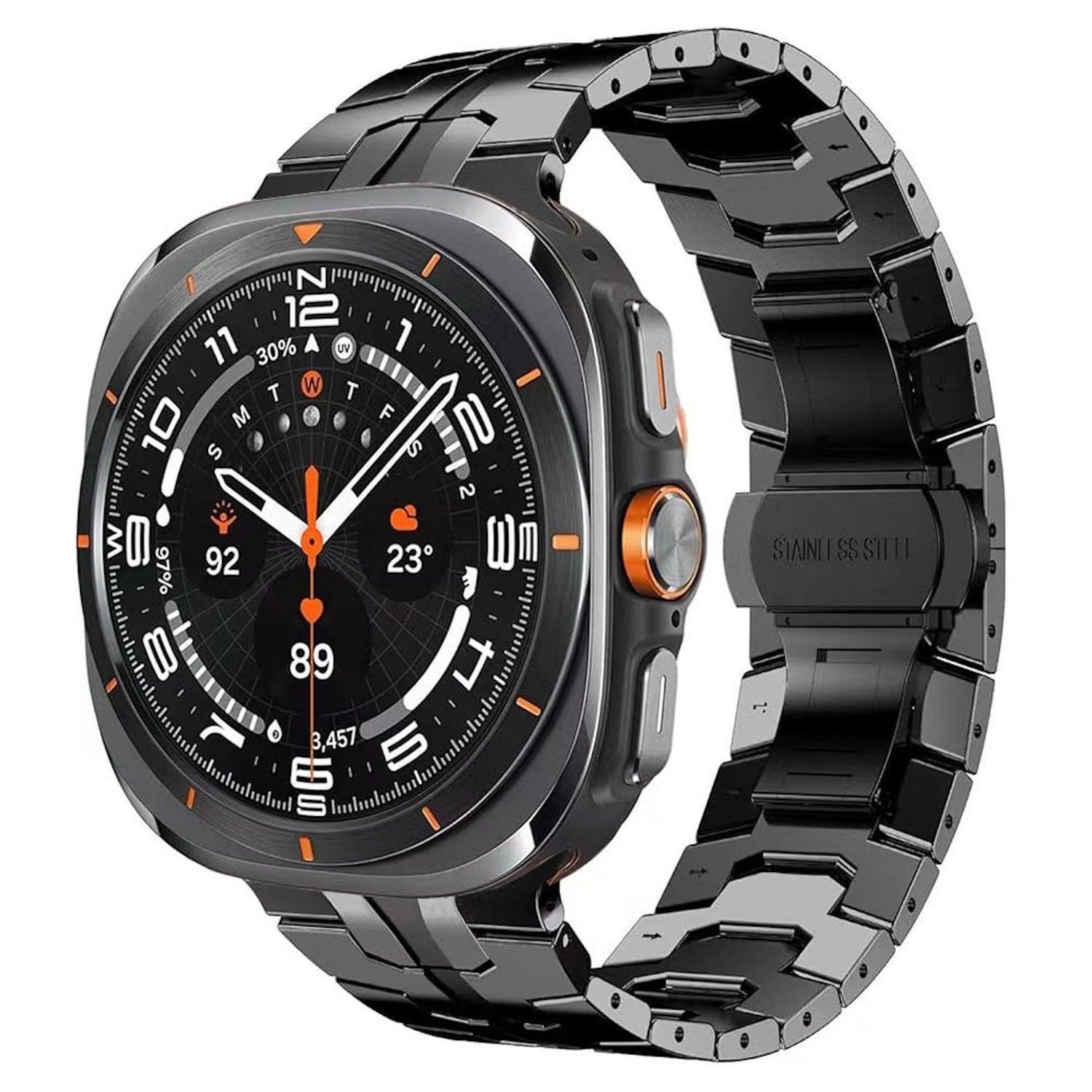 Dieses exklusive Titan Alloy Armband verleiht deiner Galaxy Watch 8 / 8 Classic einen eleganten und modernen Look. Es kombiniert hochwertige Materialien mit einer praktischen Butterfly-Schließe für einen sicheren Halt und hohen Tragekomfort.