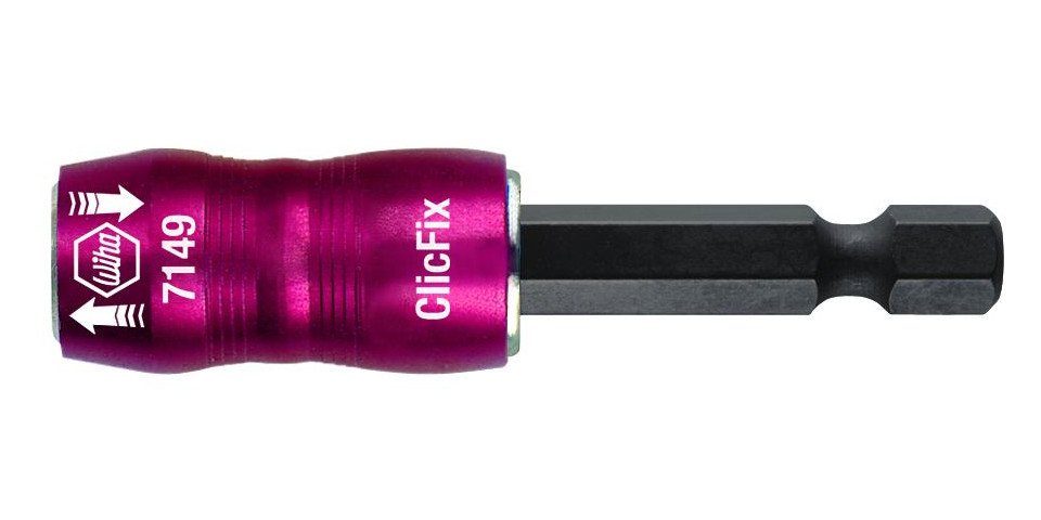 Wiha ClicFix Schnellwechselhalter aus eloxiertem Aluminium mit starkem Neodym-Magnet. Schneller Bitwechsel dank Einhandbedienung.