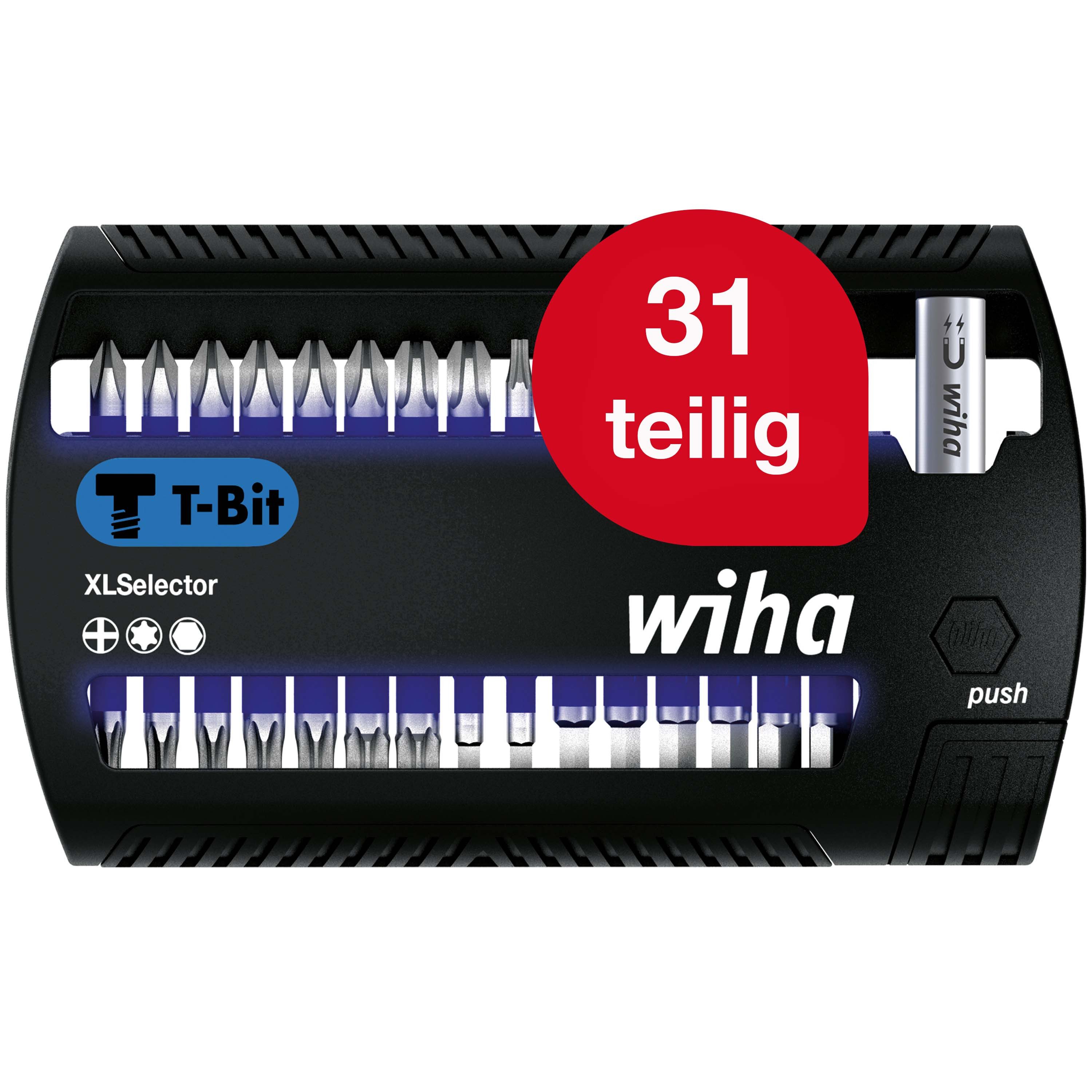 Wiha Bit-Set XLSelector (41830) - 32 tlg., T-Bit 25 mm PH, TORX, Sechskant 1/4" C6,3, magnetischer Bithalter