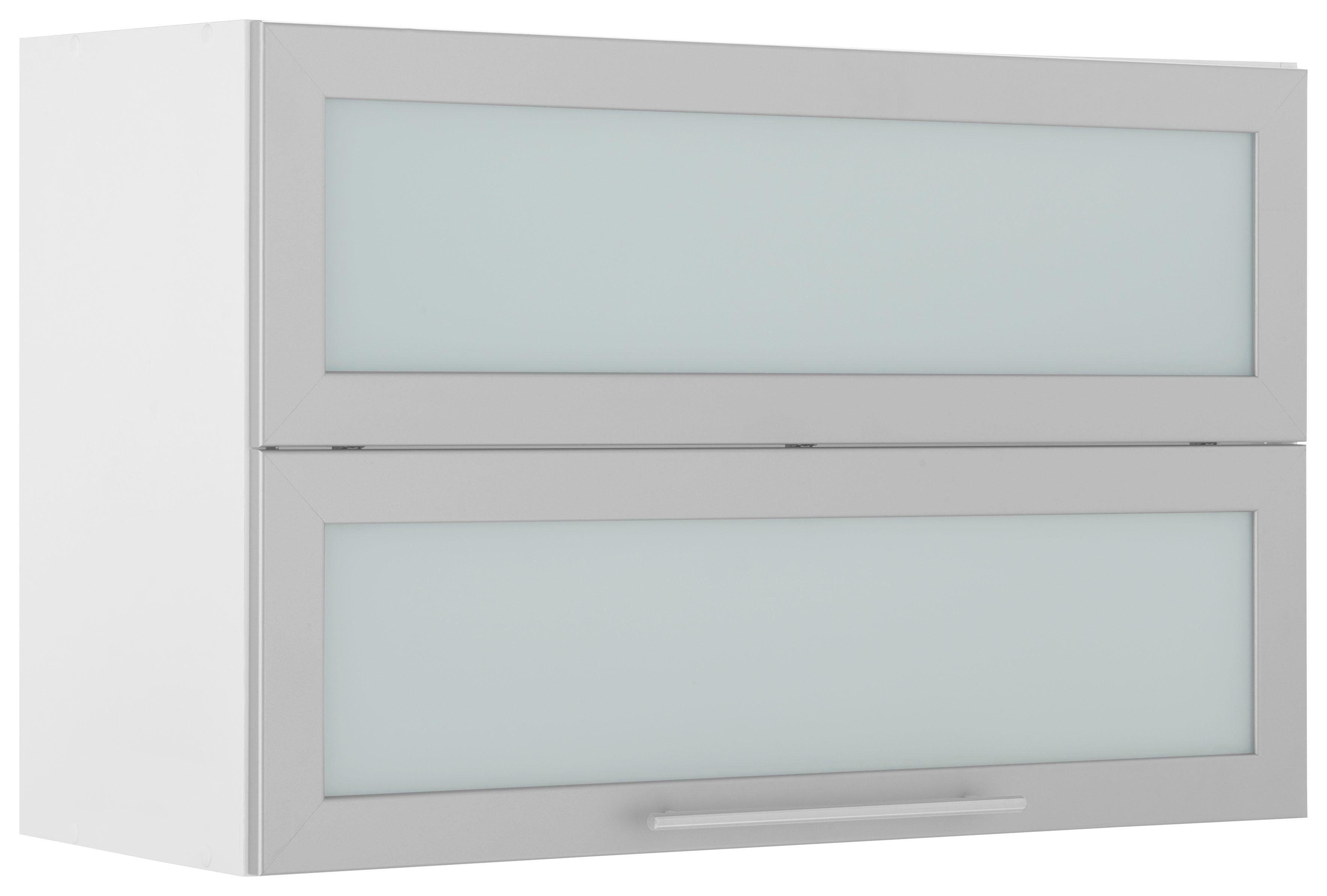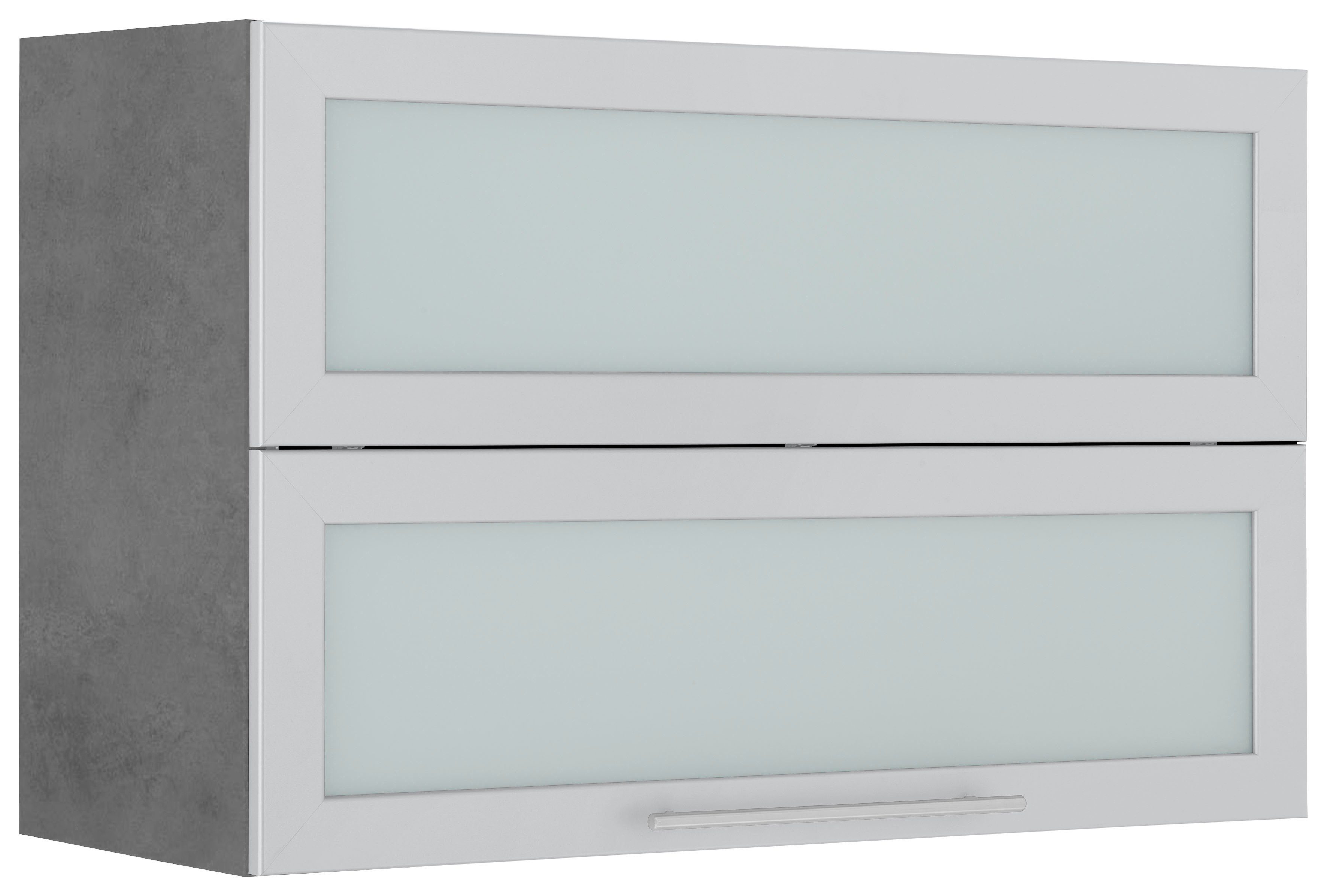 Farbe | Front: Glastür und aluffarbener Rahmen, Korpus: betonfarben |