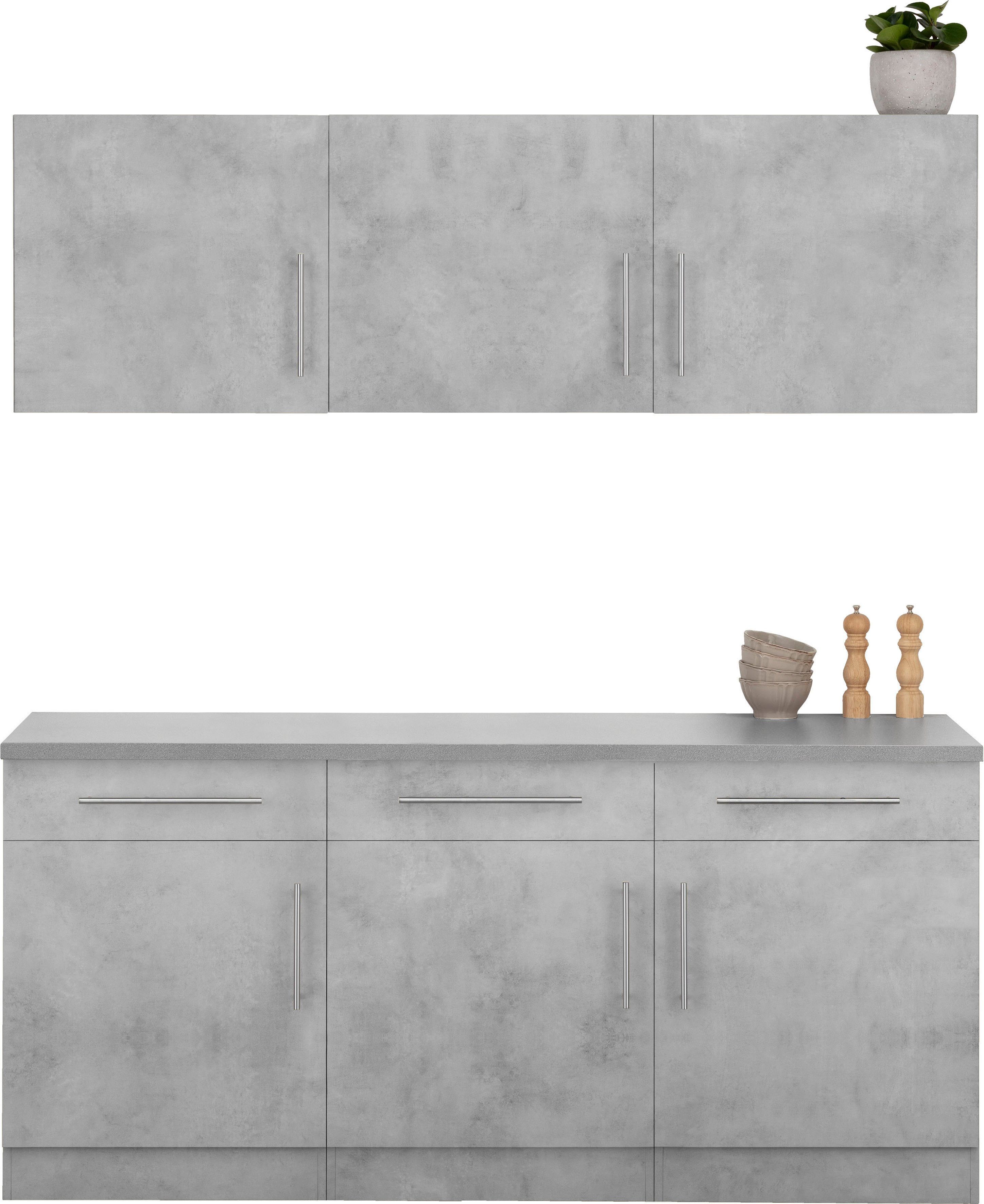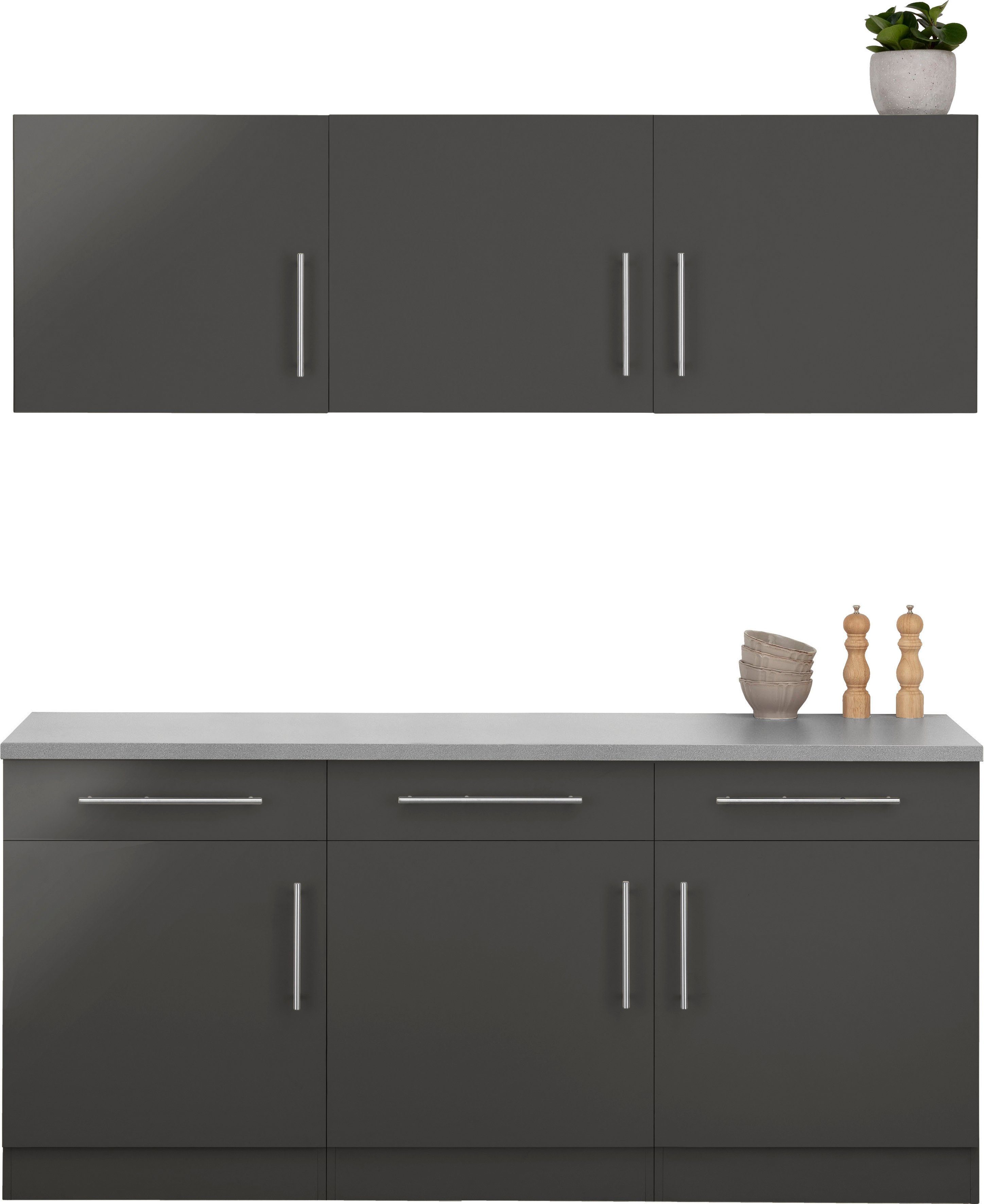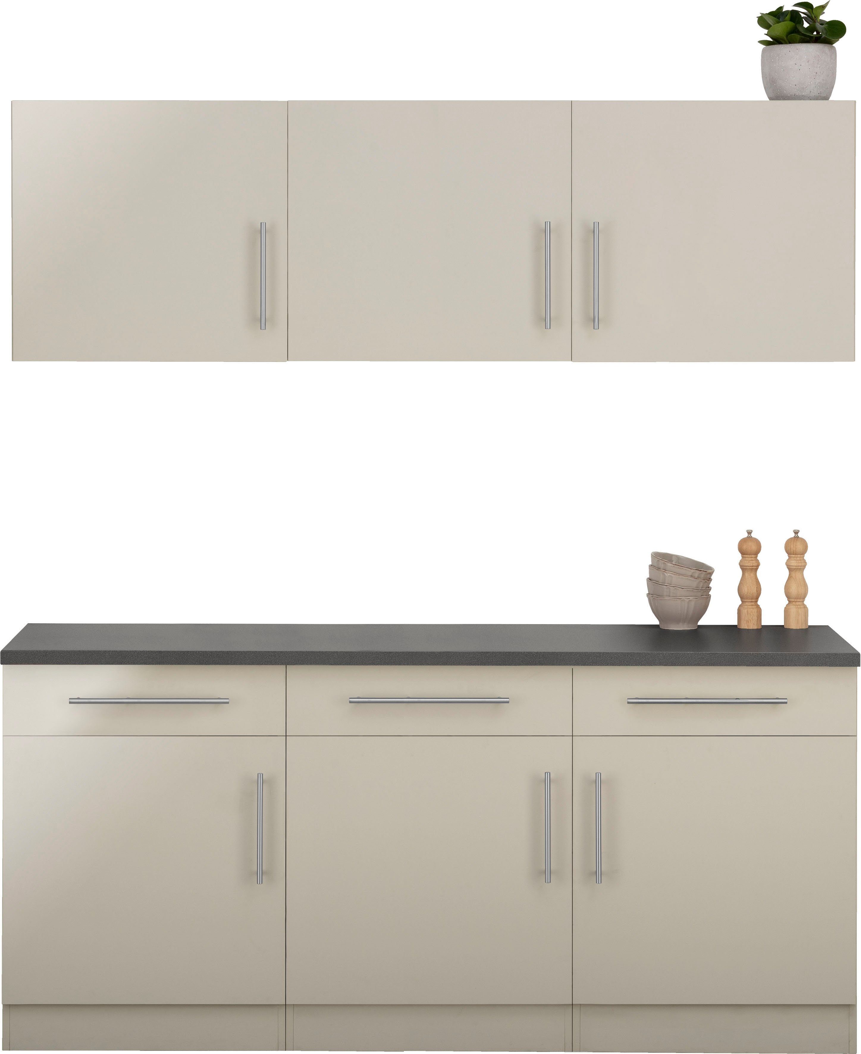 Ausstattung | Durchgehende Arbeitsplatte Einlegeböden höhenverstellbar Laufleisten der Schubkästen aus Metall Metallgriffe Sockelhöhe nicht verstellbar Türen wahlweise rechts/links montierbar |