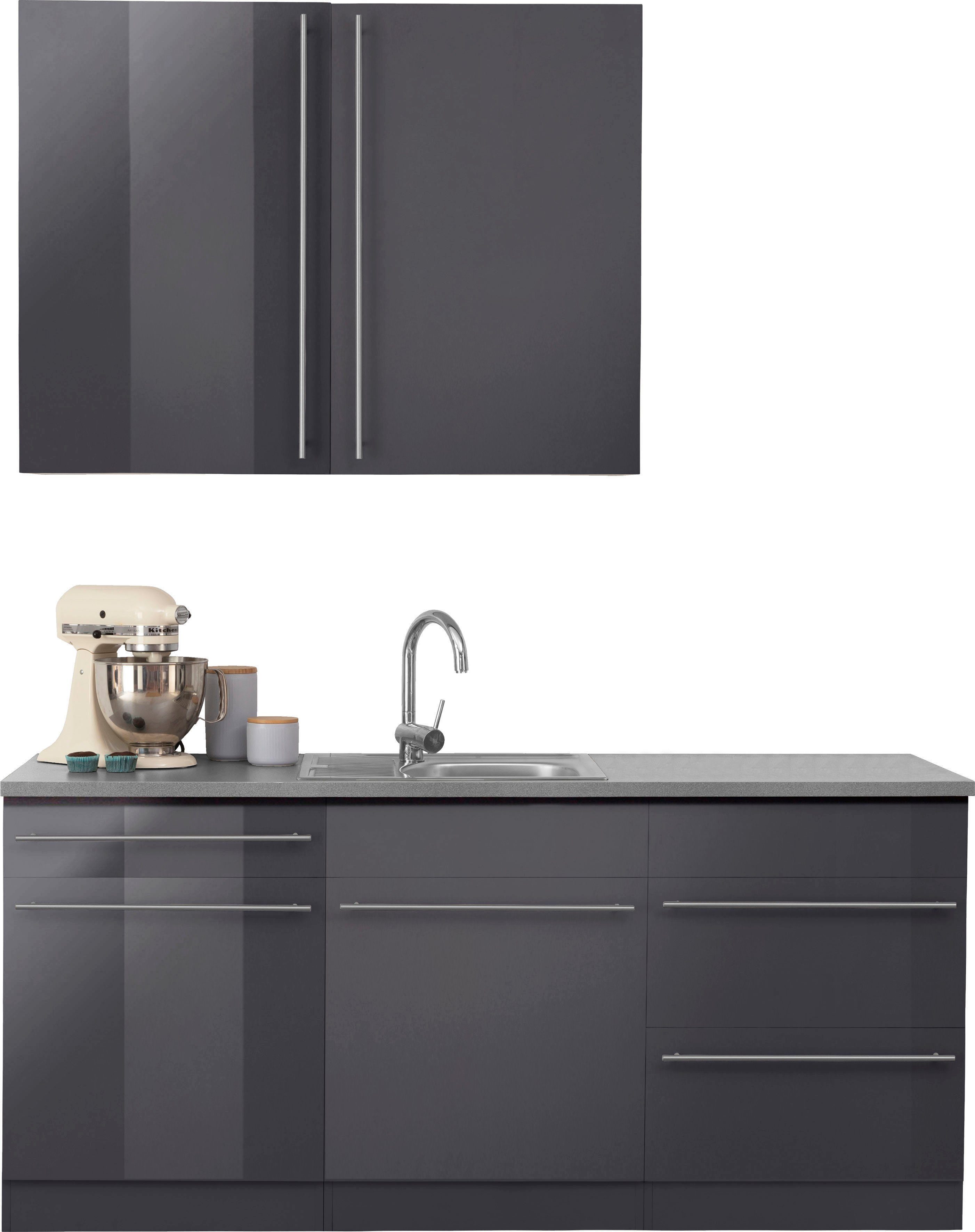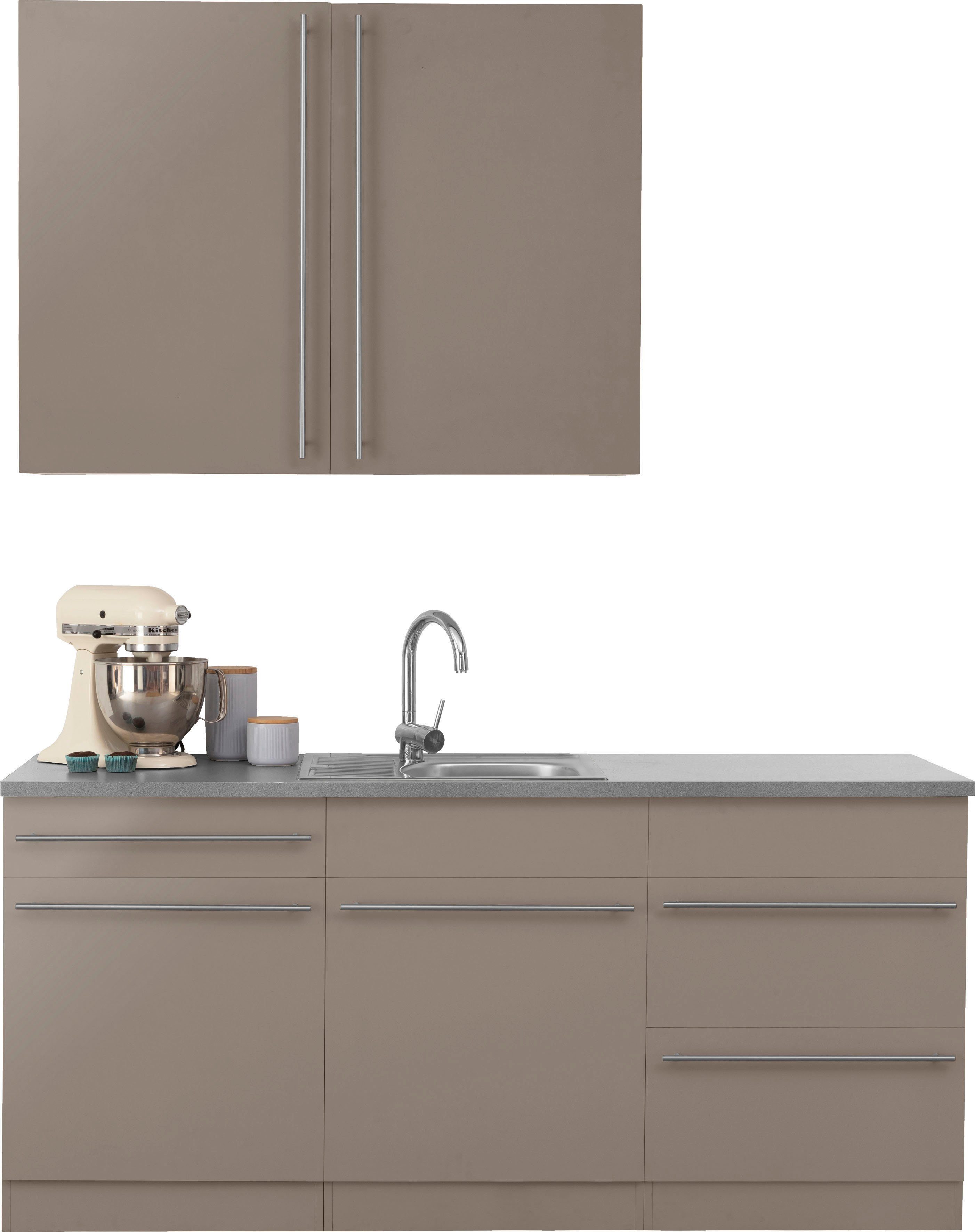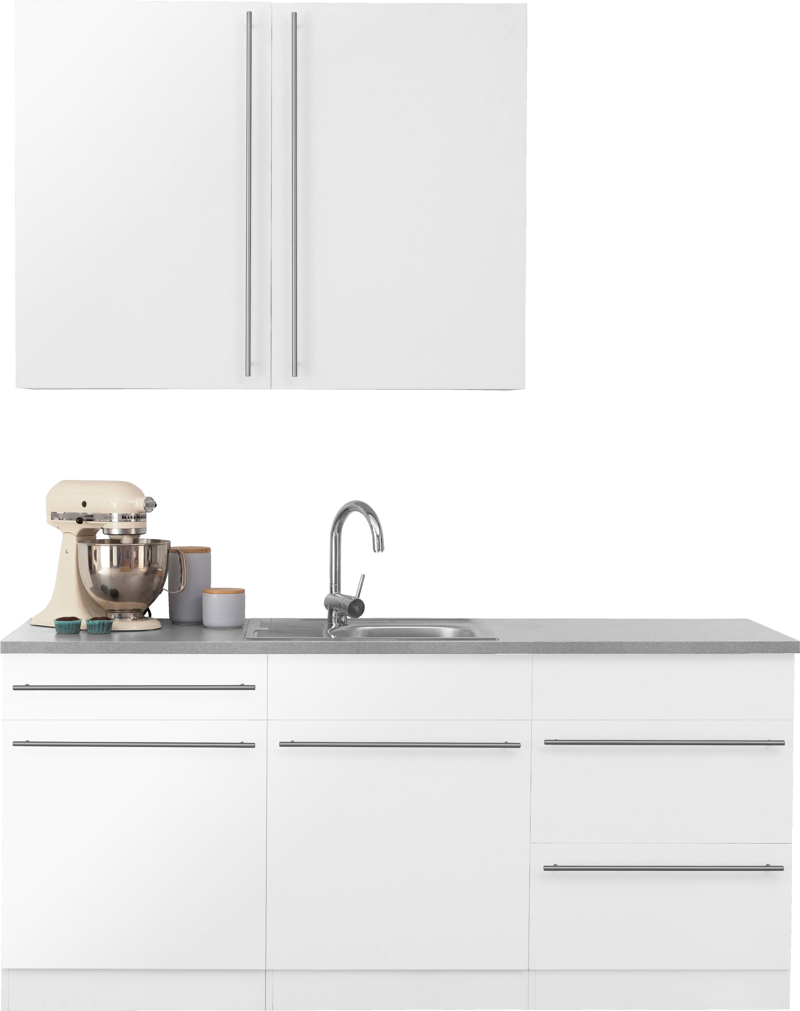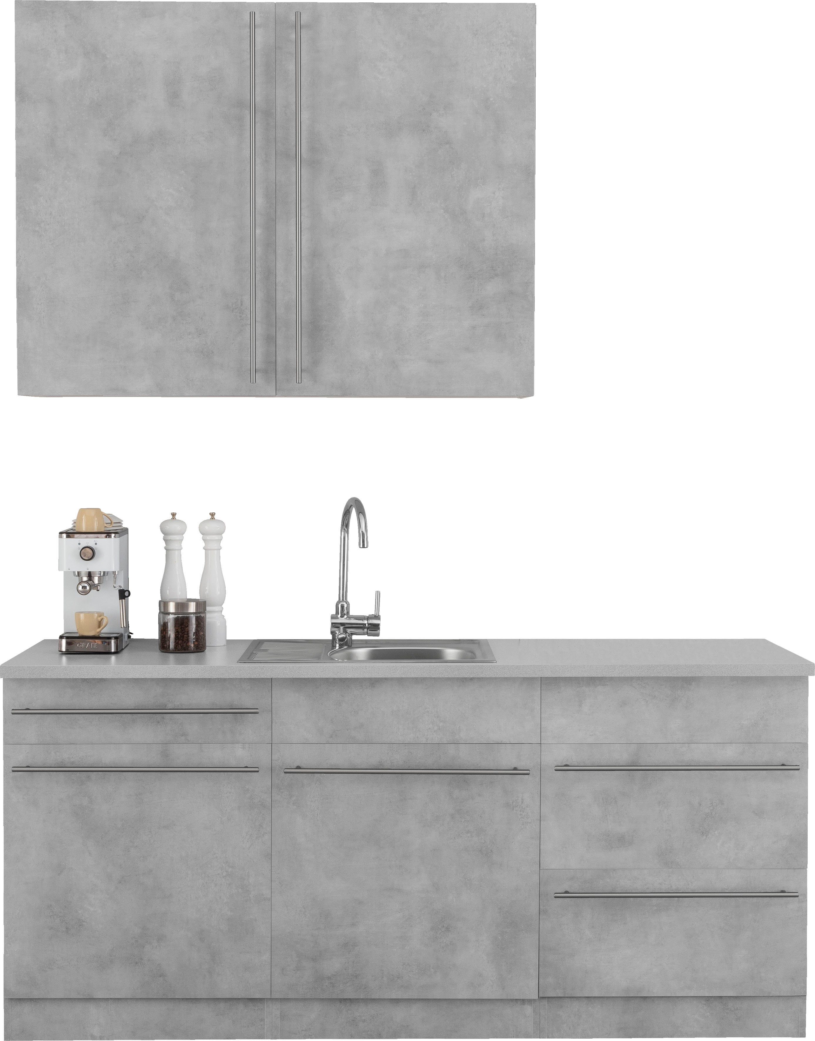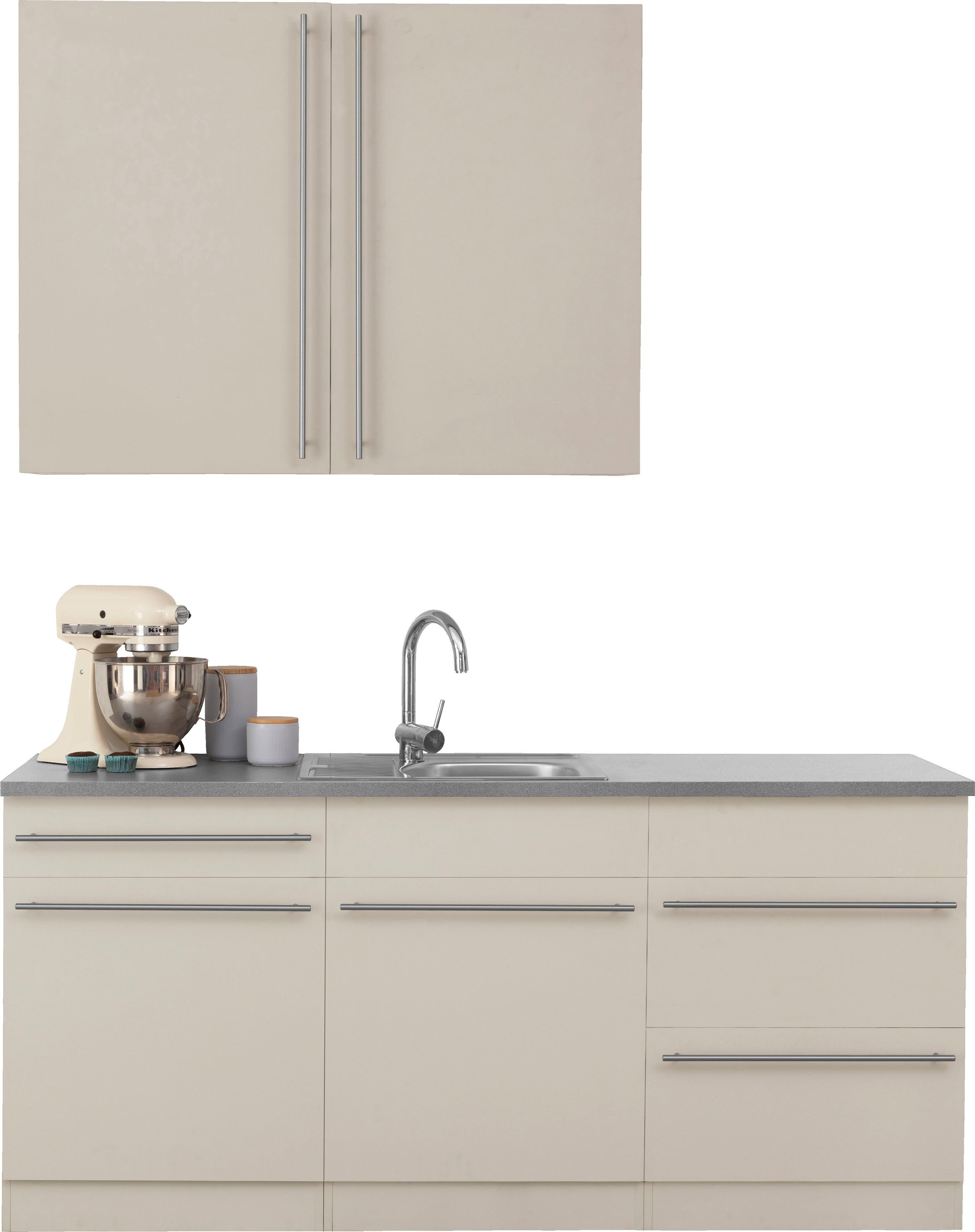Ausstattung | Durchgehende Arbeitsplatte Einlegeböden höhenverstellbar Laufleisten der Schubkästen aus Metall Metallgriffe Sockelhöhe nicht verstellbar Türen wahlweise rechts/links montierbar inkl. Edelstahl-Einbauspüle, mit Abtropffläche ohne E-Geräte |