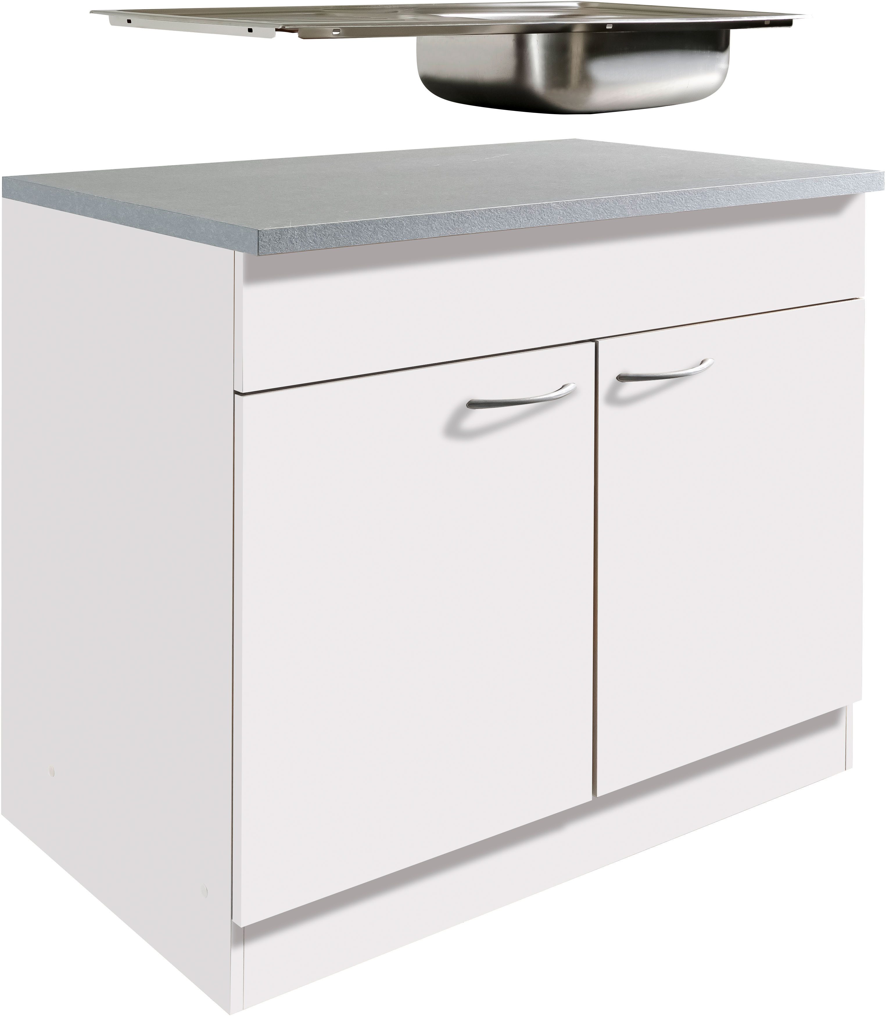 Montagehinweis | Arbeitsplatte ohne Ausschnitt für Spüle keine Vorbohrung für Armatur - dadurch Spüle variabel einsetzbar |
