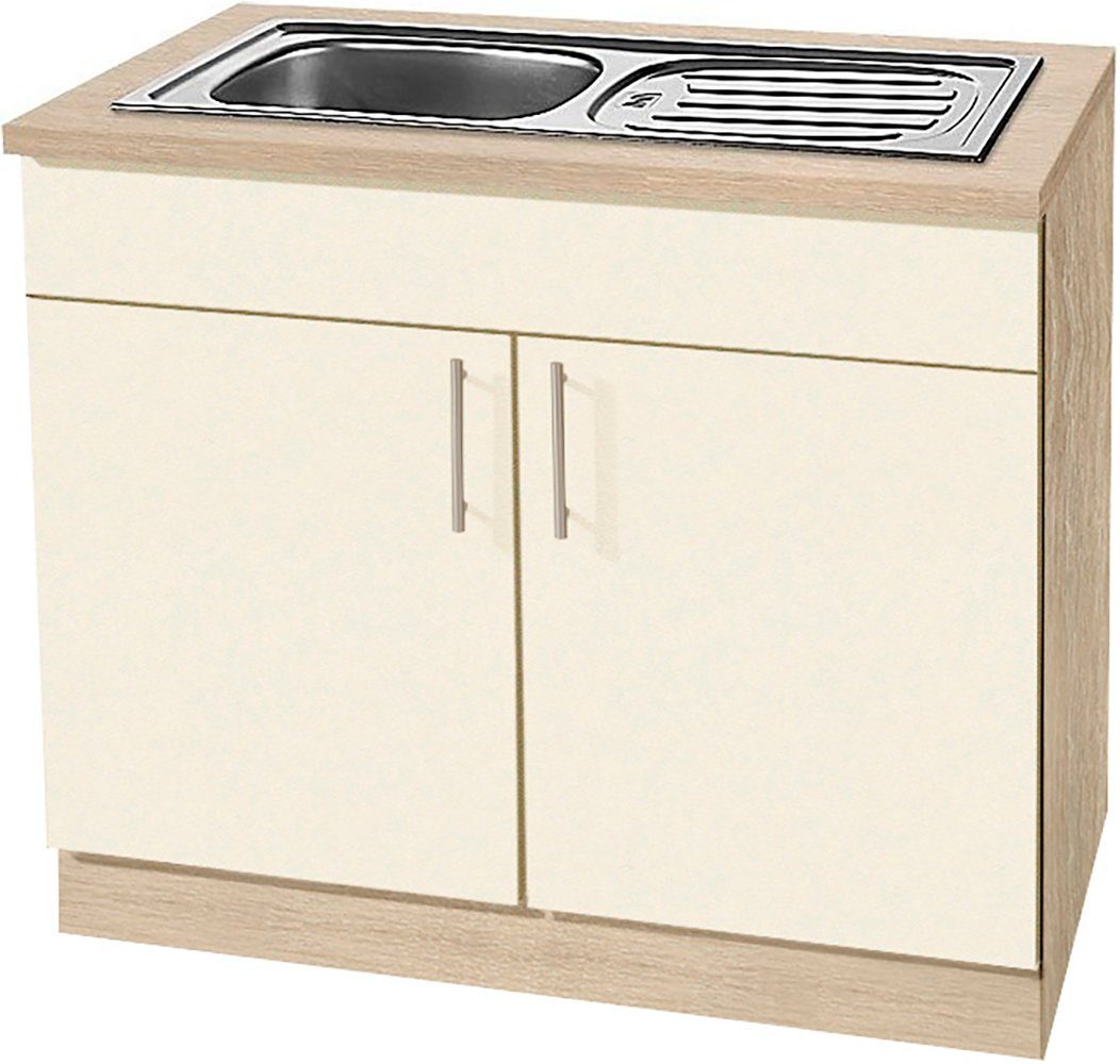 Farbe | Front: Magnolia, Korpus und Arbeitsplatte: Sonoma Eiche |