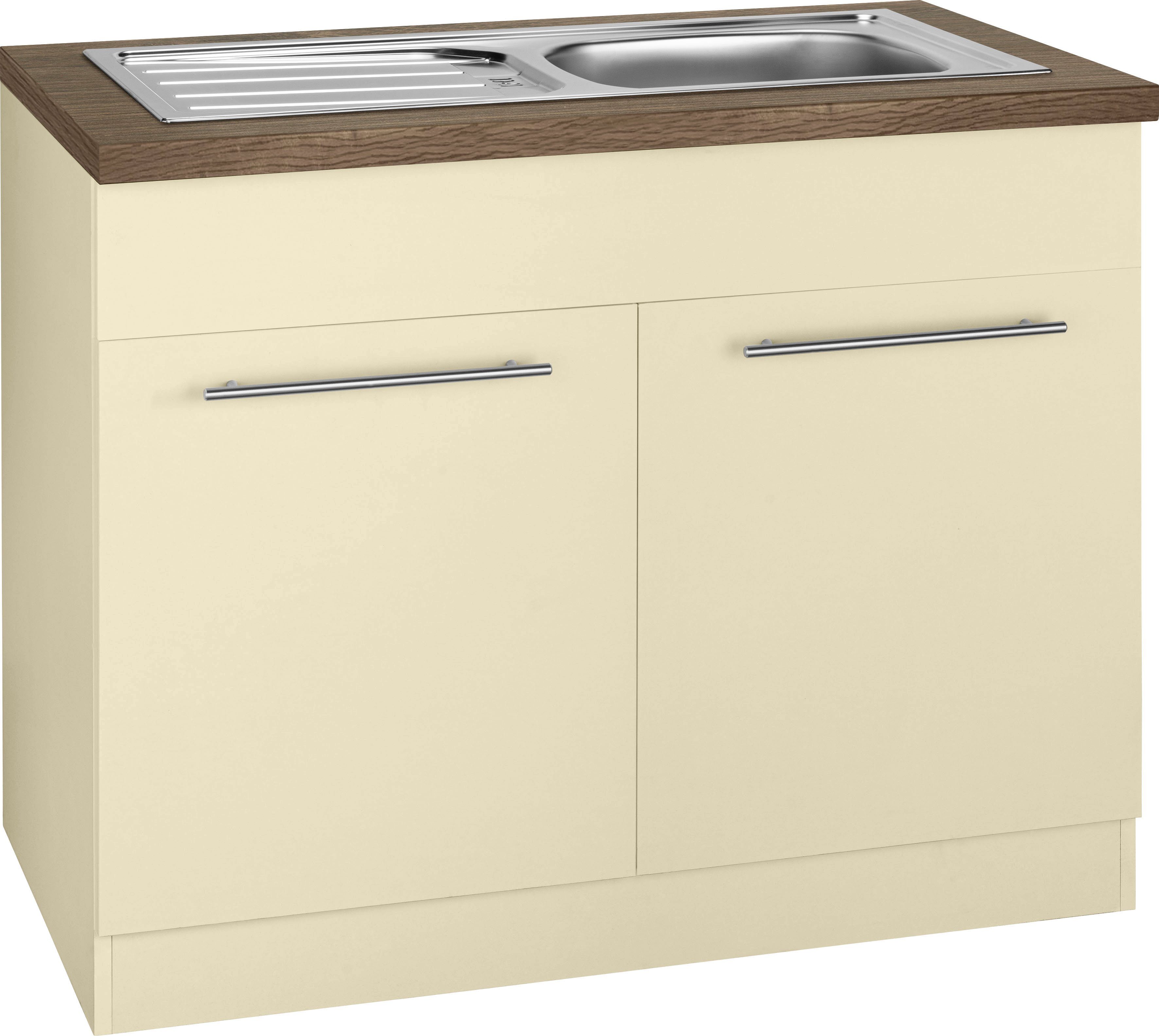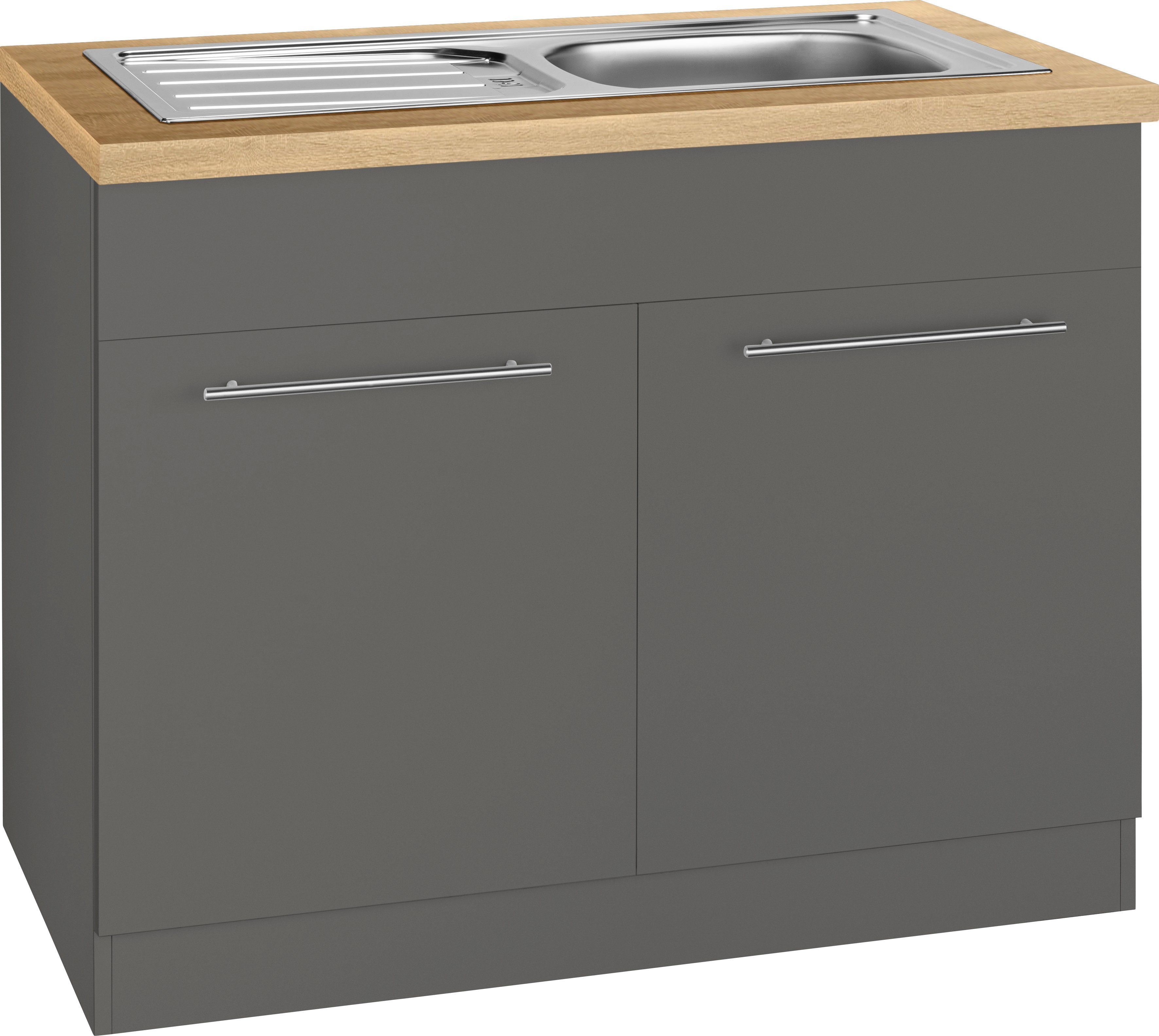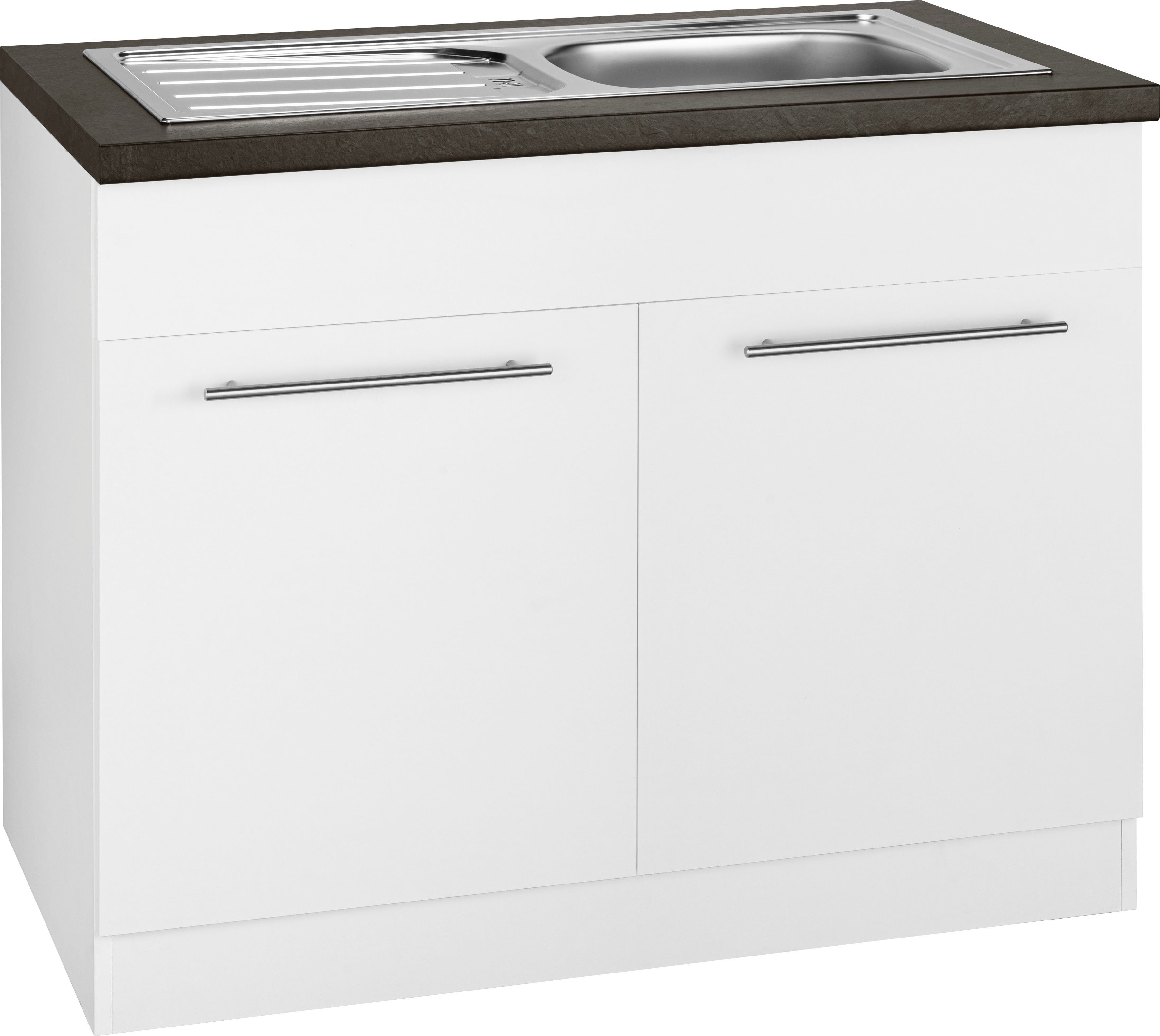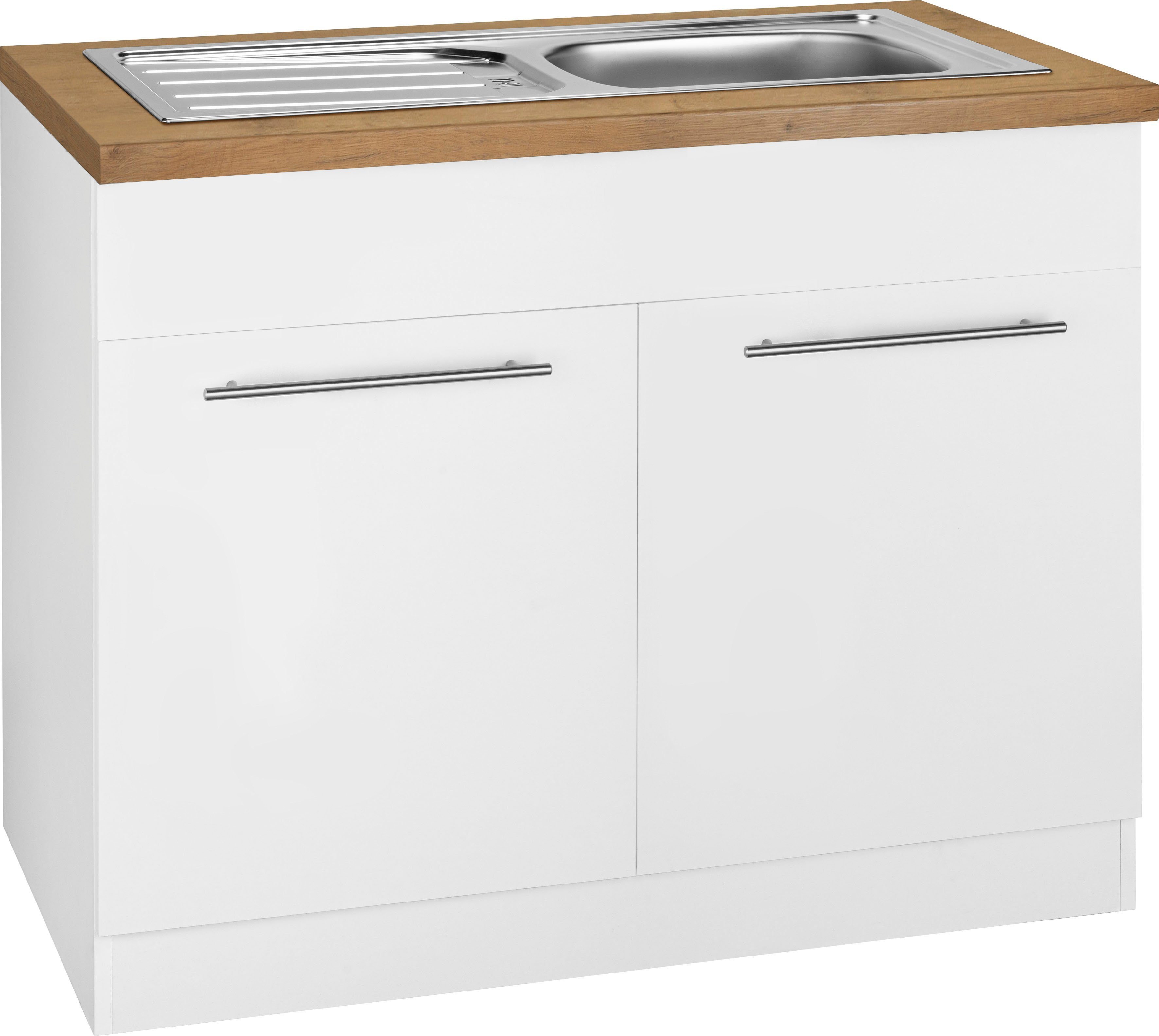Hinweis Lieferumfang | inkl. Edelstahl Einbauspüle mit Abtropffläche: Gesamtmaße (B/T): 86/43,5 cm, Maße des Spülbeckens: (B/T/Beckentiefe): 35/32/13 cm |
