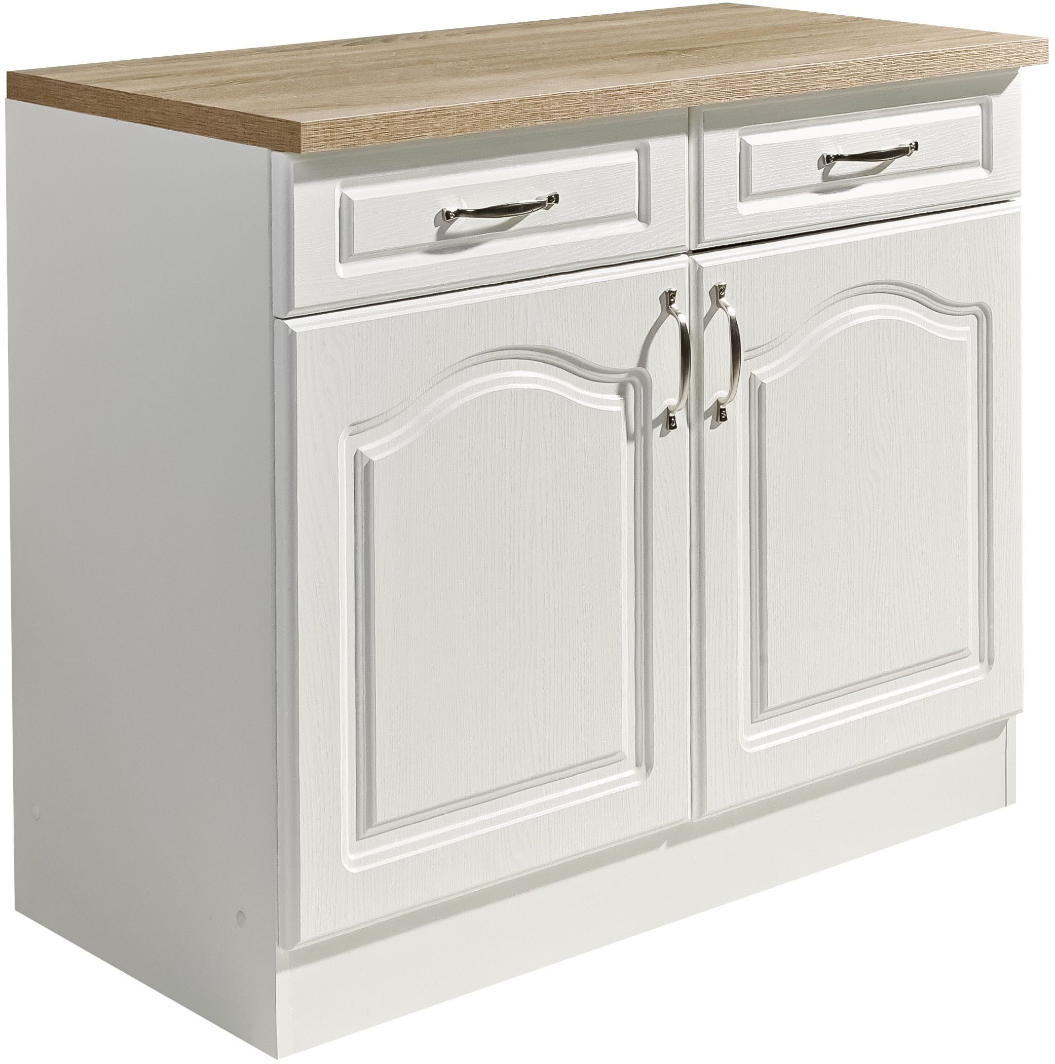 Farbe | Front: Landhaus Eiche, Korpus: Sonoma Eiche, Arbeitsplatte: Granit Grau |