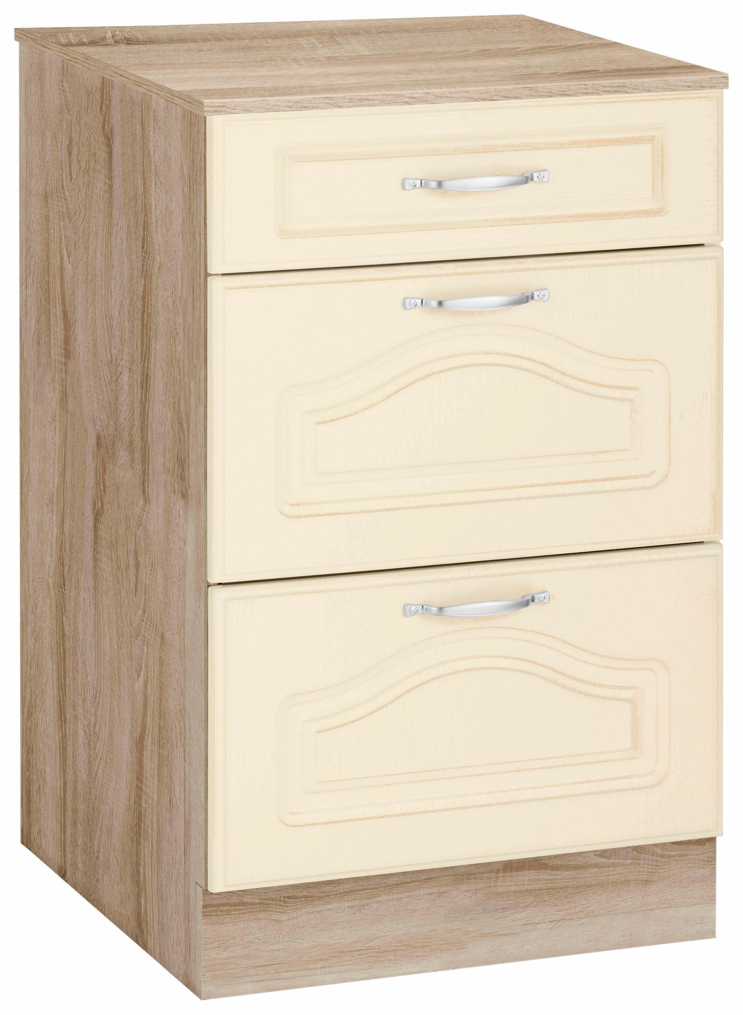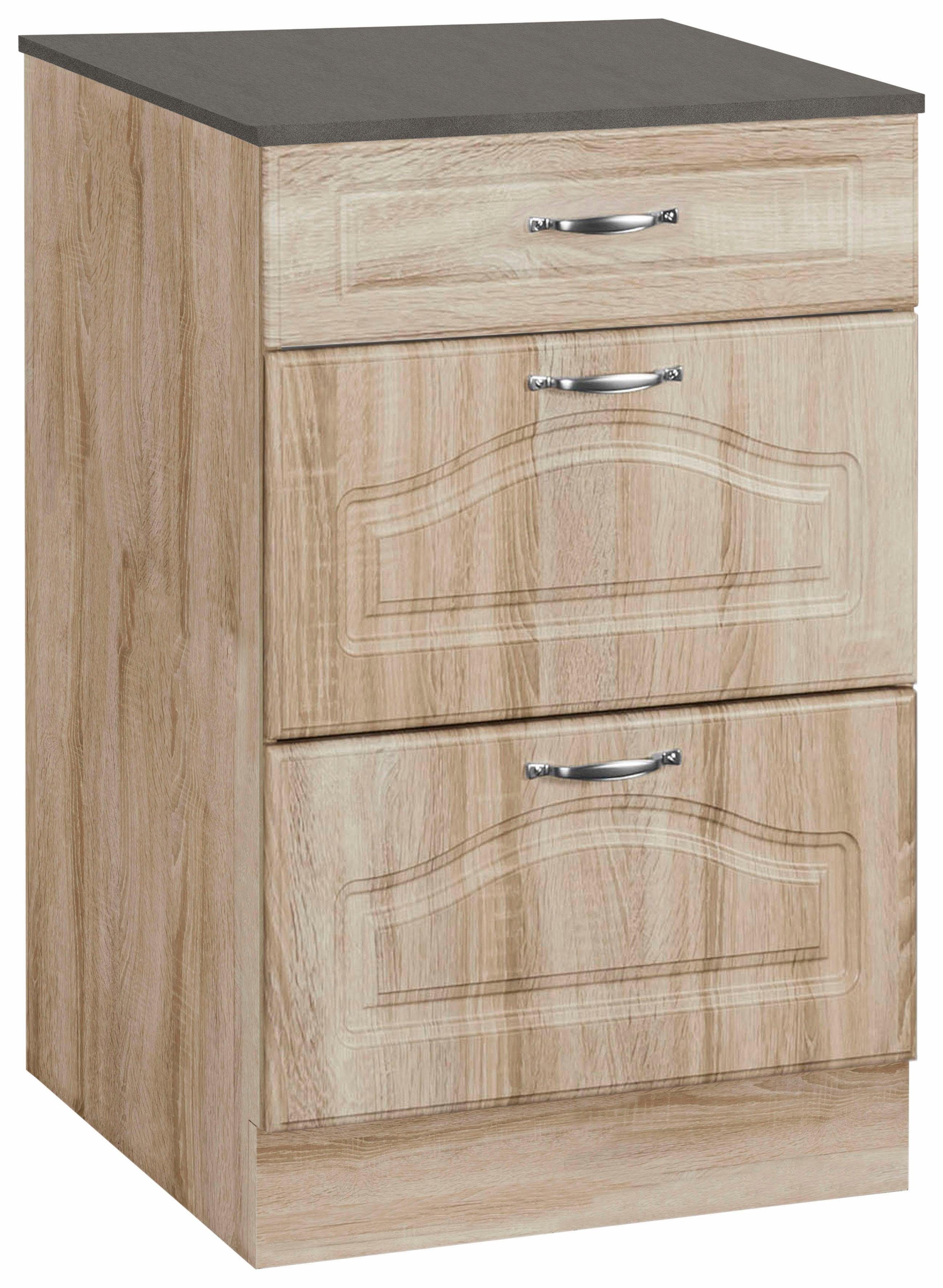 Farbe | Front: Landhaus Eiche, Korpus: Sonoma Eiche, Arbeitsplatte: Granit Grau |